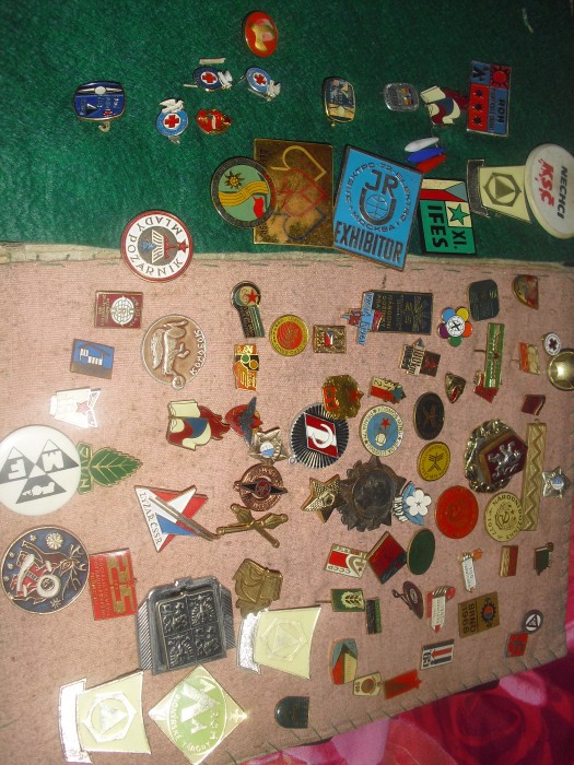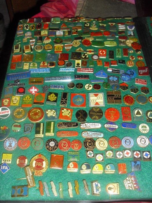 Taková sbírka odznaků a známek, ta je skladnější, odznaky i známky jsou v albu, takže místo nezabírají. Sbírka odznaků je poděděná a další odznaky, které už sbíral syn a pak i vnuci, jsou v šuplíku a nikdo se nemá k tomu je do alba doplnit. Jak jsem dnes album vyndala a otevřela kvůli nafocení, tak zaručeně je neschovám dřív než k nim přidám ty ze šuplíku.