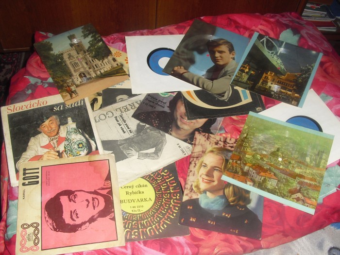 Známky jsou pozůstatkem po dětech, ta velká alba plná známek mají u sebe doma a dvě malá jsou tady taková zapomenutá. Starých gramofonových desek jsem měla spoustu, dnes už se přehrávají cédečka, a tak jsem si na památku starých časů schovala jen pár desek, aby vnoučata věděla, jak se dřív poslouchala hudba.