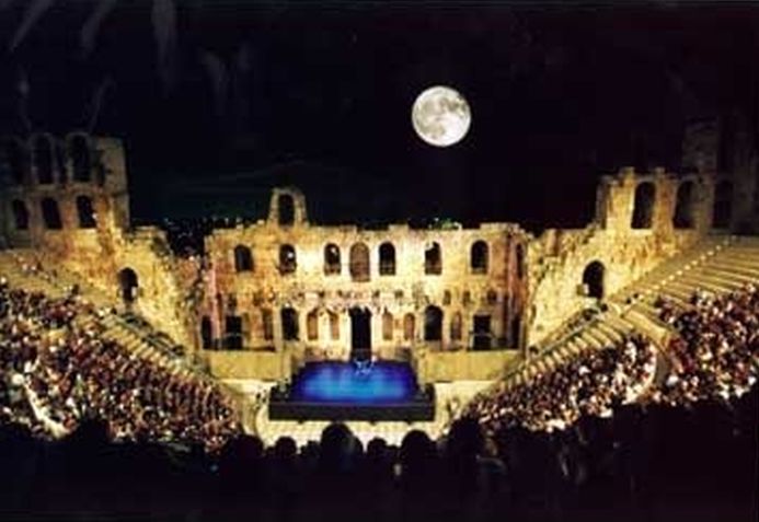 V roce 1982 jsem byl služebně na atletickém mistrovství Evropy v Athénách. Pochopitelně jsme vedle pracovního nasazení na sportovních stadionech měli čas na návštěvu památek, které byly všude okolo nás. Předpokládám, že řada ze čtenářů i60 podobná antická divadla navštívila v Itálii, Řecku, Turecku nebo i Bulharsku. V původním antickém divadle Herodion pod athénskou Akropolí - ( i jinde ) se občas hrají představení pro turisty (video), a tak jsme nezaváhali a zaplatili jsme si návštěvu Eurípidovy tragédie „Médea“, kterou jsem už znal z Prahy. Herci hráli v klasických tógách, ale bez masek (video), na které nejsme v moderním divadle zvyklí. Skvělá akustika stupňovitého kamenného kruhového hlediště je neuvěřitelná. Herci sice mluvili řecky, ale pod jevištěm se pohybovaly titulky překladu do angličtiny. Kostýmy, atmosféra místa i večerní osvětlení nás vtáhly do děje. Na takové představení se nezapomíná. Když se vypnulo elektrické osvětlení po představení, tak měsíc v úplňku svítil na antické divadlo stejně jako před více než před 2000 lety.