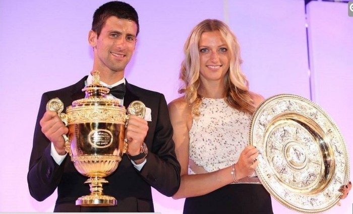 Dnes večer by měla tančit na slavnostním plese ve Wimbledonu Petra Kvitová s Novakem Djokovičem tanec vítězů. Stejně jako v roce 2011, kdy oba získali své první velké vítězství. Podívejte se v příloze, jak jim to tehdy slušelo.