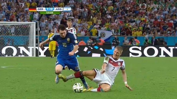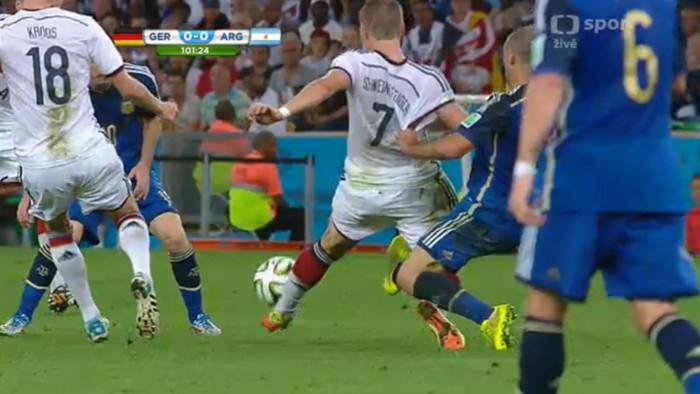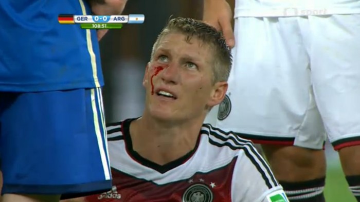 Jak už tady někdo v diskuzi napsal, tak fotbal je někdy ladný jako balet a tanec. Jindy je ale tvrdý a brutální jako rvačka, při které teče krev. Mezi záběry sejmuté z televizního přenosu jsem zařadil v příloze článku i zkrvaveného Němce Schweinsteigera, který byl zraněn až v prodloužení zápasu. Po ošetření se radoval společně s ostatními  ze získání trofeje mistrů světa i s krvavou památkou na tváři.