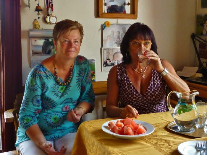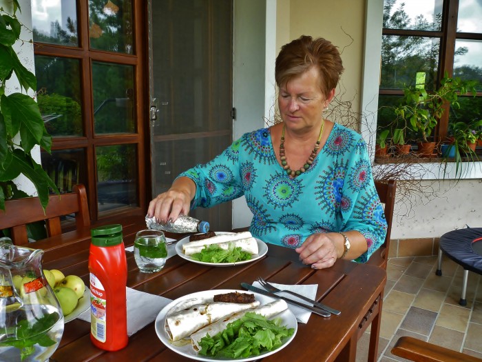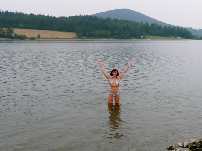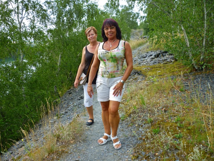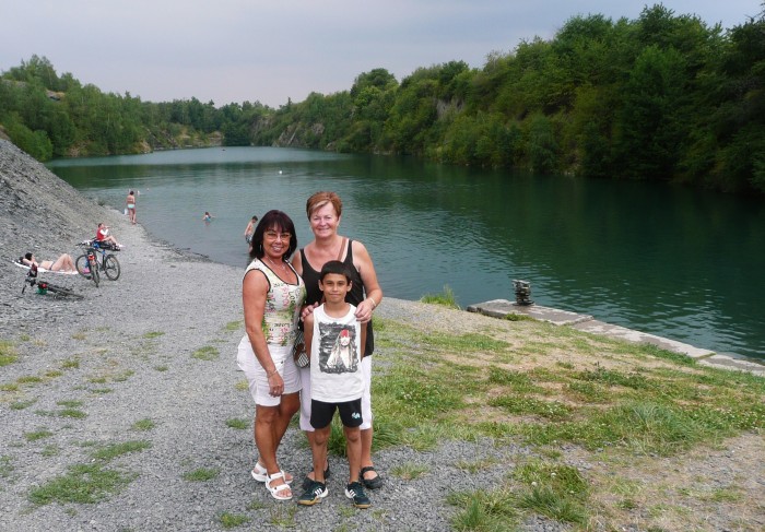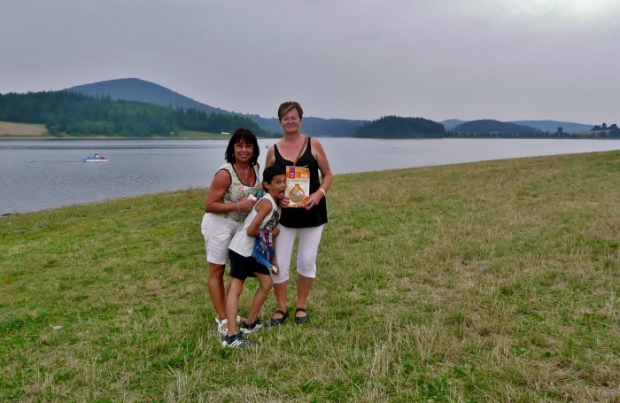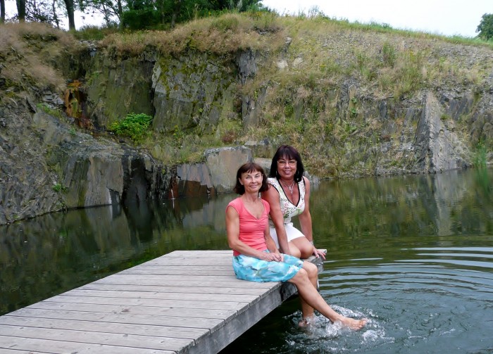Eva přijela autobusem k nám, naložily jsme tašky a vydaly se i s vnukem na 158 km dlouhou cestu. Bylo velké teplo, nemám v autě klimatizaci, ale úspěšně jsme všichni dorazili do cíle. Uvítala nás Danielka, droboučká žena s úsměvem na rtech, obejmutím a připraveným osvěžujícím občerstvením. Potom jsme ihned vyrazili na výlet po kraji, kde Danielka žije mnoho let, zná historii snad každého domu, stromu, skály či lomu. Za odpoledne jsme najezdili 50 km, tolik krásné přírody i okamžiků jsme všichni zažili a vrcholem dne bylo koupání v přehradě, která byla pro zataženou oblohu vylidněná, ale voda byla jako ve vaně, a tak jsme si to užili.