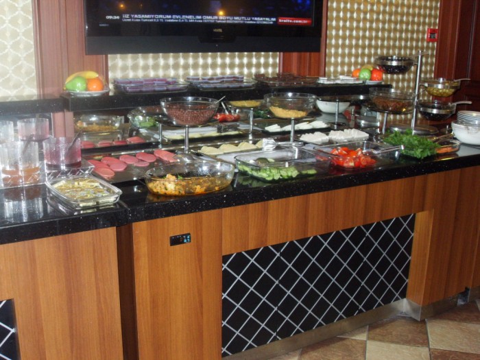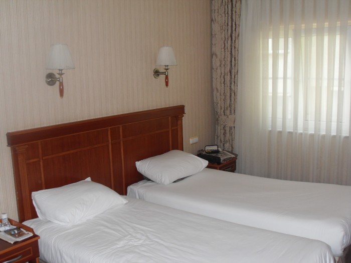 Přijíždíme k našemu hotelu. Vystupujeme čtyři. Mladý pár před námi umí dokonale anglicky. Máme radost. V recepci odevzdáváme patřičný papír i pasy a dostáváme průkazku hotelu. Můžeme si vybrat, zda chceme společnou či oddělenou postel. Dostáváme klíč a míříme k výtahu. Zde se nás okamžitě ujímá zřízenec a pomáhá nám s kufry na kolečkách. Nechápu, ale budiž. Vyjíždíme do 3 patra. Vlastně do čtvrtého, ale první není označeno číslem. Je zde jídelna, bar a místnost pro společenské hry a vodní dýmku. Pokoj máme přímo naproti výtahu. Vcházíme dovnitř a jsme mile překvapeni. Čistý, útulný malý pokojíček se zapnutou televizí. Turecké programy a sportovní kanál. Slušné sociální zařízení se sprchovým koutem. Jsme spokojeni.
