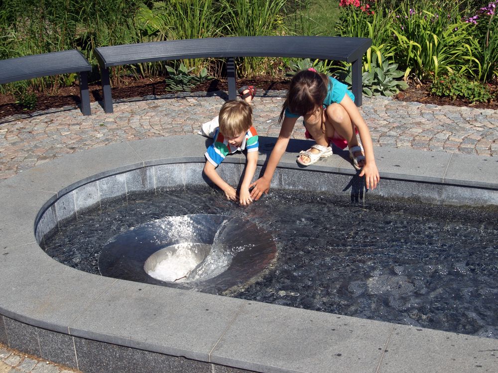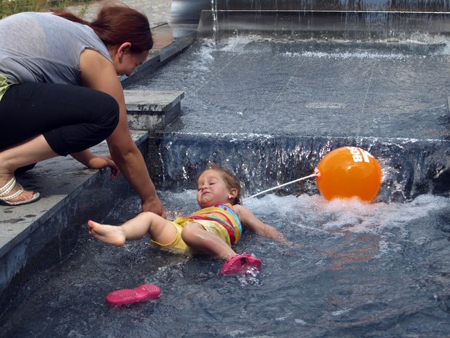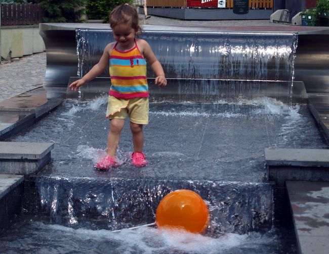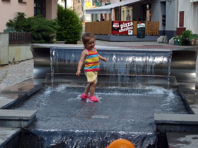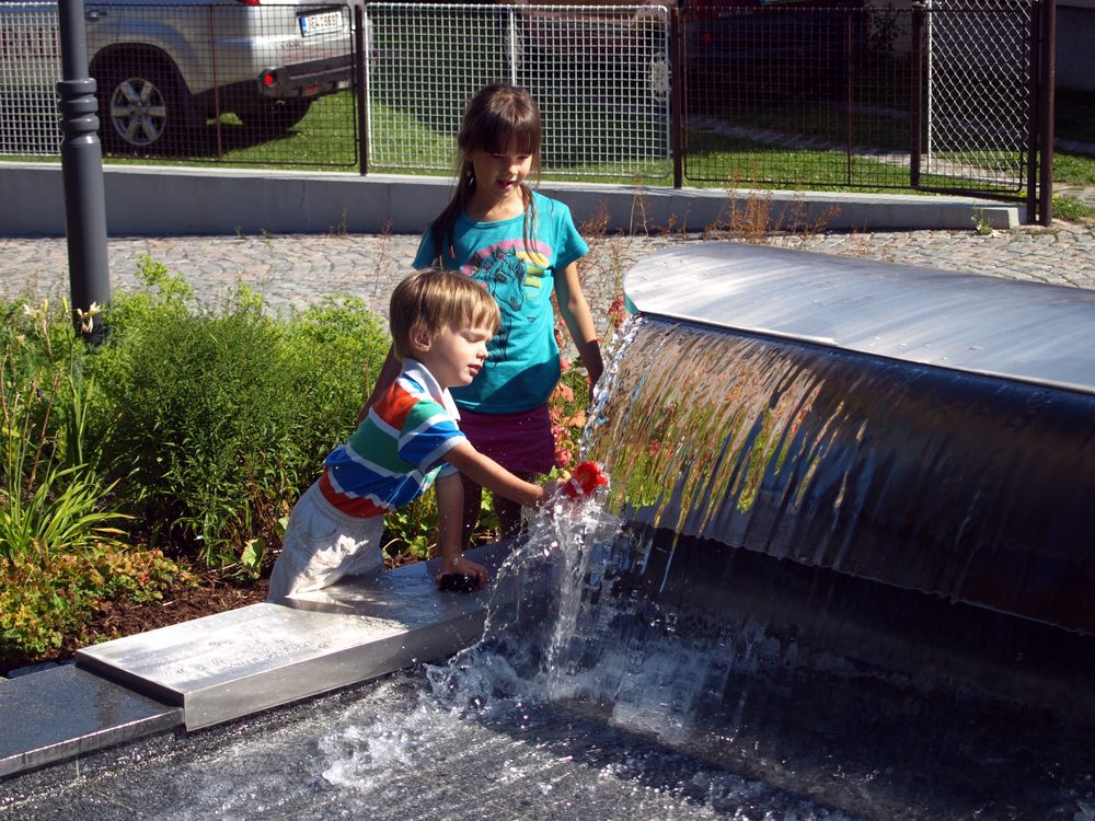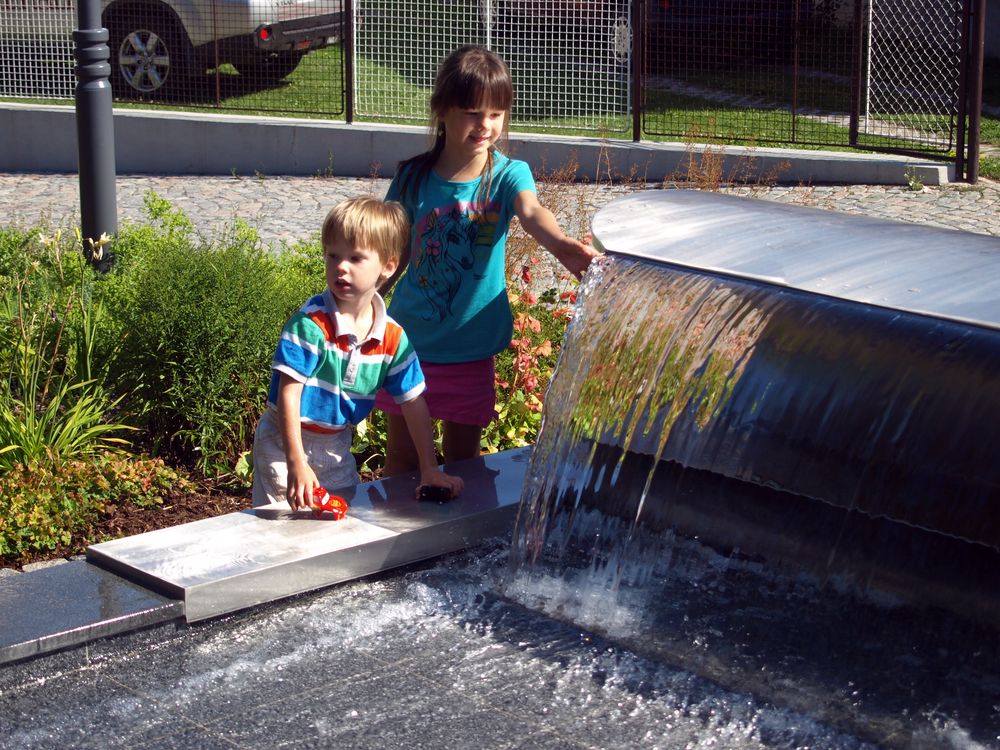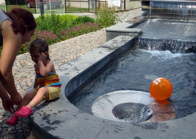 Nemá smysl popisovat detailně umístění dalších kašen a fontánek u nás. Budou stačit fotografie. Ještě jeden můj příběh z fotografování fontánek s dobrým koncem. Bylo velké horko a šel jsem fotografovat do města. Zaujalo mne malé děvčátko, které se brouzdalo v tekoucí vodě u malého umělého vodopádu. Její maminka přihlížela a bavila se s kamarádkou na blízké lavičce. Voda byla mělká a nehrozilo žádné nebezpečí. Děvčátko se vydalo pro nafukovací balónek, který jí uplaval po proudu. Jak fotopříběh dopadl se můžete podívat v části mé vernisáže.