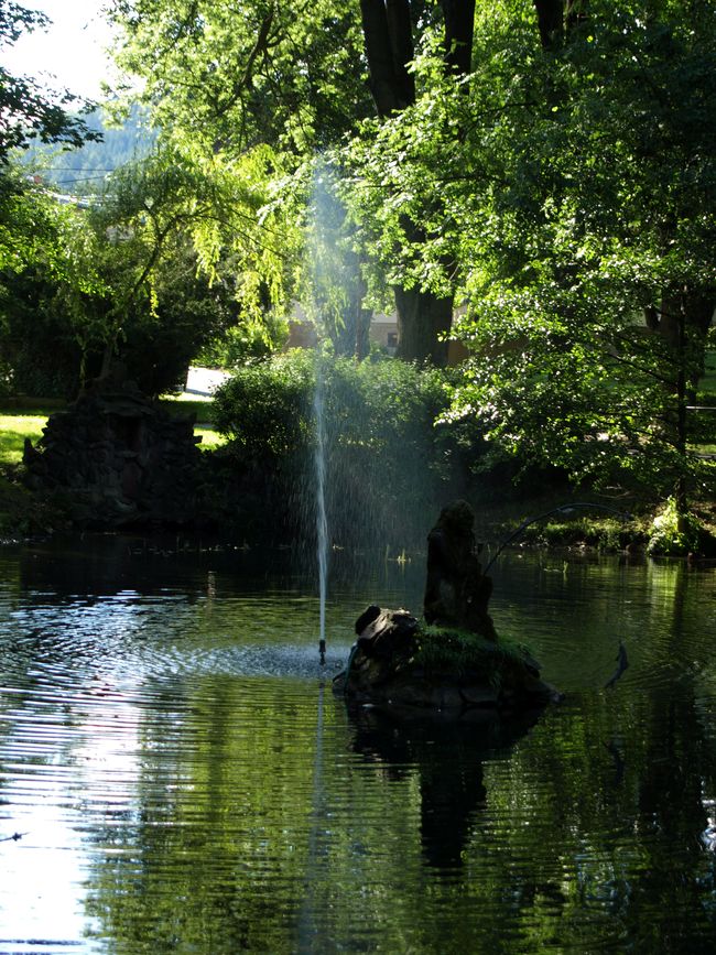 Už jsem tady napsal jeden článek o České Třebové a některé fotografie jsem rád použil i tady. Máme tu hezký park jménem Javorka, kde teče do jezírka v malých kaskádách potůček. V jezírku je malý ostrůvek s vysokým vodotryskem - jak je vidět ve fotogalerii. Zkrášlovací spolek ho zbudoval již v roce 1885 a přidal na ostrůvek kýčovitou sošku vodníka jak chytá ryby. Ale je to lepší než trpaslík. Někdy je toho zkrášlování až moc.