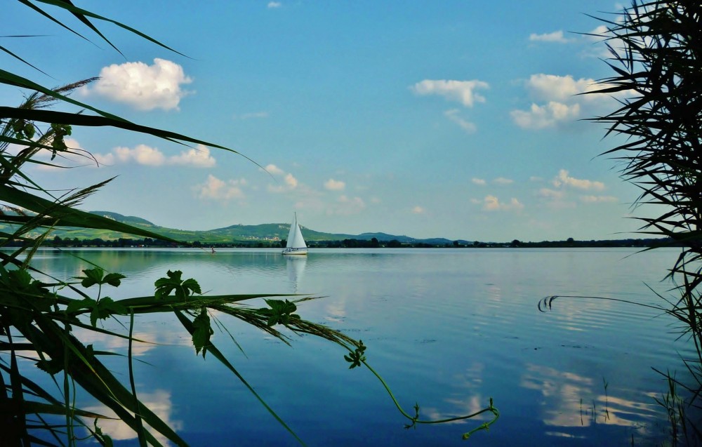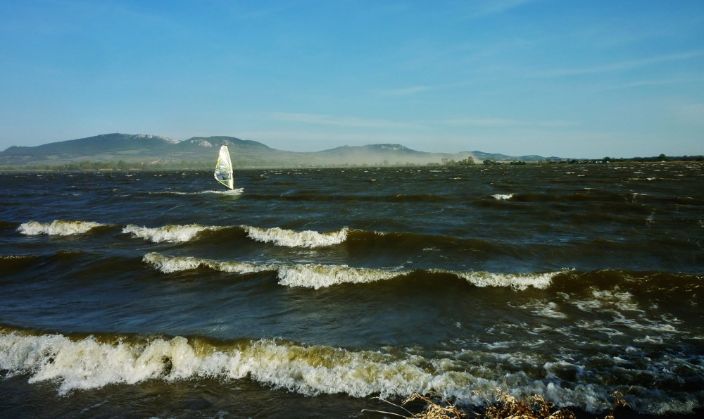 Brzy ráno je Pálava v namodralém oparu a svit slunce se něžně tříští na poklidné hladině. Všude je ticho, jen kvákající žáby, zpěv ptáků a rosa, která vám zvlaží bosé nohy. Labutě a kachny vyvádějí svá mláďata. V dálce je plachetnice čekající na vítr. Neskutečná scenérie.