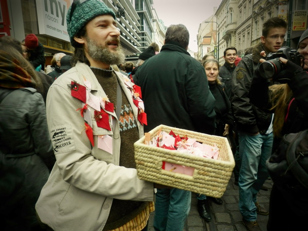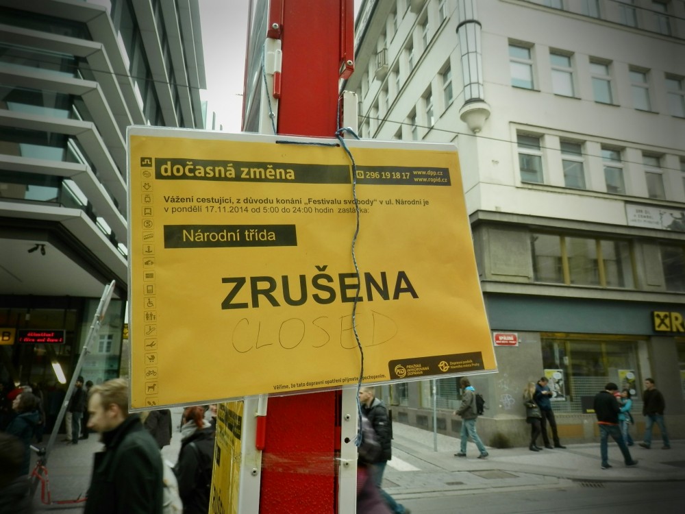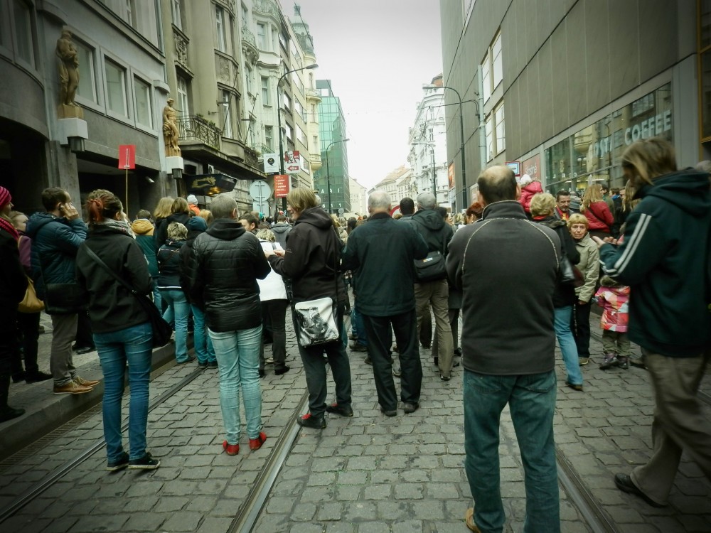 Je 17. listopad 2014, 11 hodin. Stojím v davu na rohu Spálené a Národní. Jsem tu, protože jsem nezapomněla a protože chci také dát najevo, že jsou věci, které se mi nelíbí. Dělám to s plnou zodpovědností, i když můj úsměv je při olíznutí rtů přece jen trochu slaný.