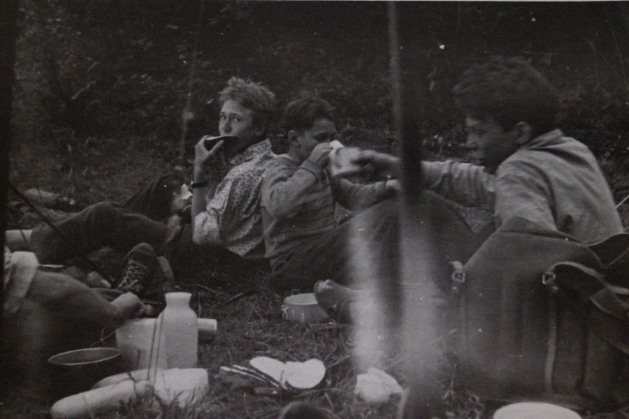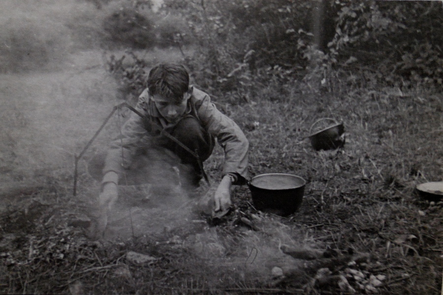 Myli jsme se v řece, vařili na ohni v kotlíku. Po snídani jsme odcházeli na vycházky do okolí, jen jeden človíček zůstal v „táboře", měl za úkol postarat se o tábořiště a připravit oběd pro všechny. Postupně jsme se všichni vystřídali. U večerního ohníčku jsme společně psali deník – vše co jsme ten den zažili. Ještě ho mám schovaný - po návratu domů vedoucí přepsal deník na stroji pro každého z nás.