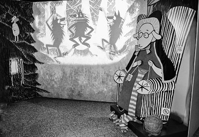 Přesně tak to vypadá v pavilonu H. Procházka vede mezi ručně malovanými kulisami, vitrínami v podobě televizních obrazovek či panely s připomínkou nejvýznamnějších večerníčkových tvůrců, představitelů, dabérů ....