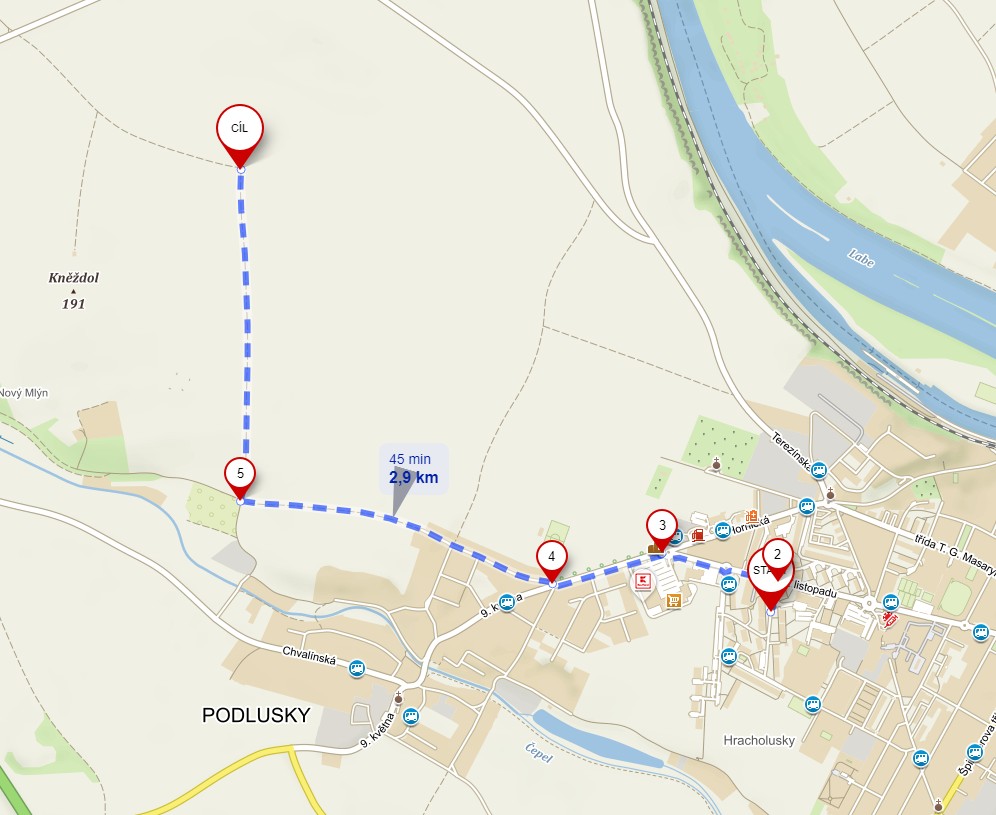 | 26.6.2019 | Roudnice n. L., kaple v Jirchářích | Roudnice n.L., Bořivojova ul. | Roudnice n. L., Lužická cesta | 3 | 4 | |
