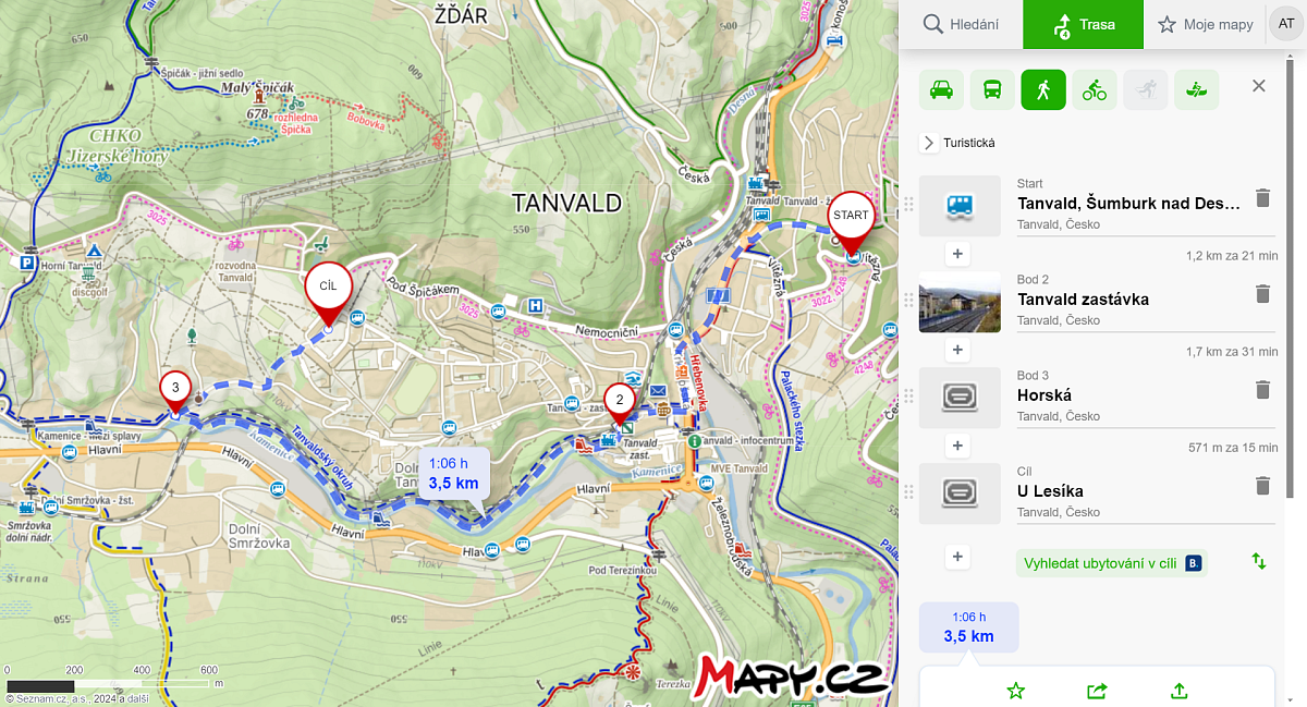 | 17.7.2024 | Příchovice-Štěpánka-Tanvald | Příchovice | Tanvald | 2 | 7 | |