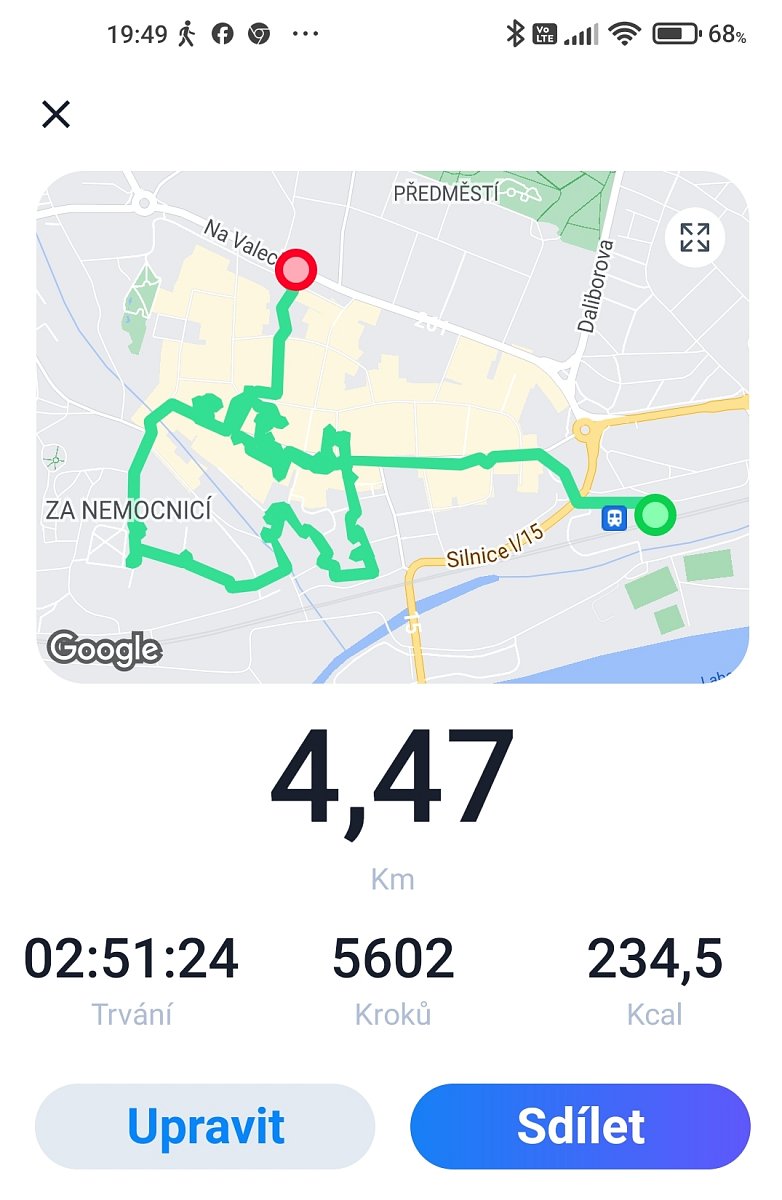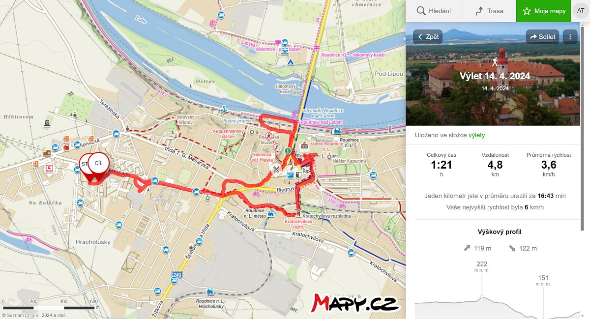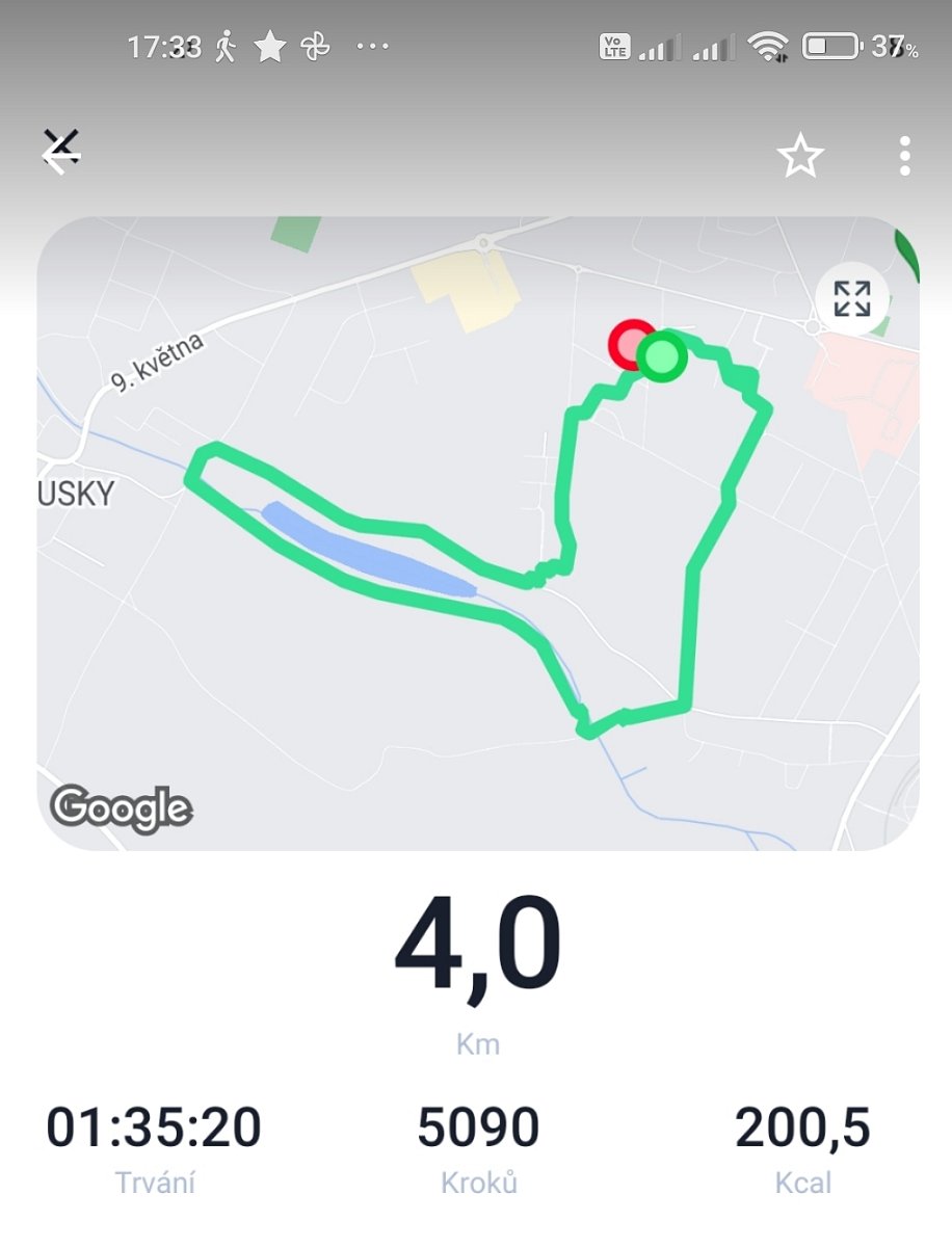 | 23.3.2020 | Procházka Roudnicí n. L. | Alej 17. listopadu | Alej 17. listopadu | 5 | 4 | |