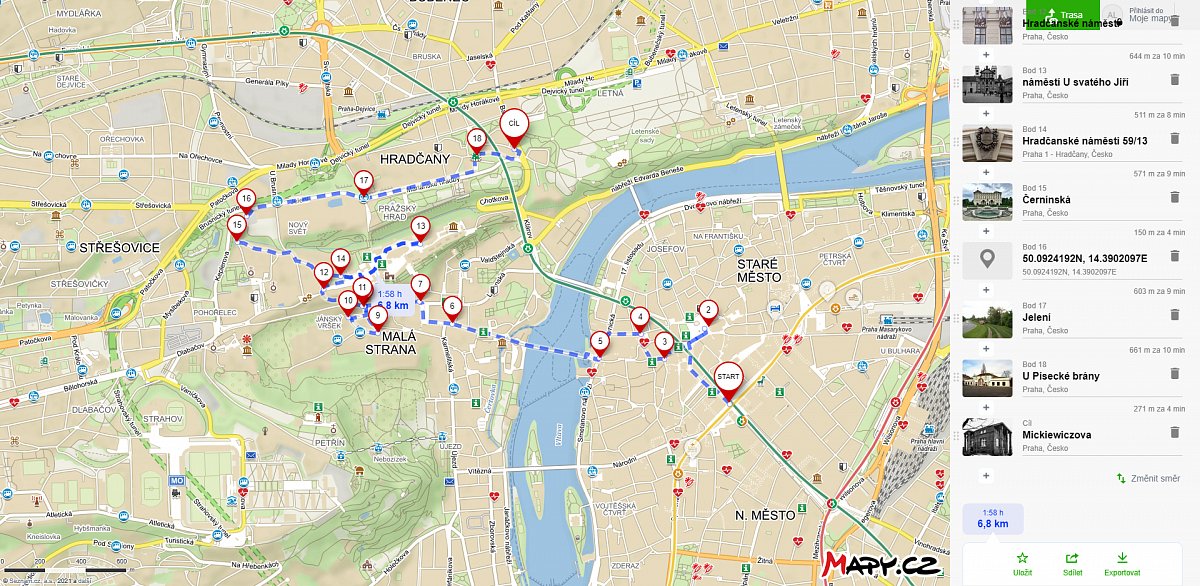 | 15.10.2019 | Petřín | Pohořelec | náměstí Kinských | 9 | 4 | |