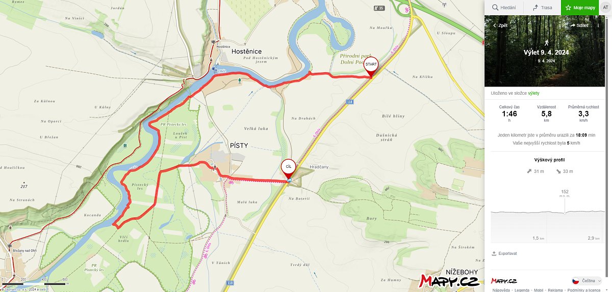 | 9.4.2024 | Pístecký les | cesta k Ohři | aut. zastávka Písty | 3 | 6 | |