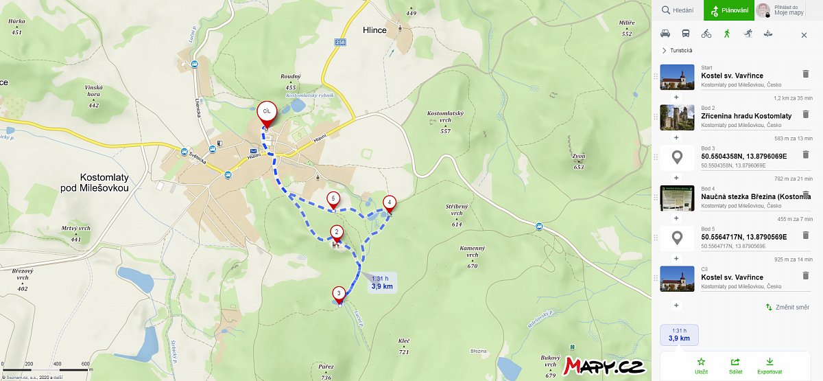 | 7.4.2019 | Hazmburk | odbočka ze silnice na tur. cestu | odbočka ze silnice na tur. cestu | 4 | 8 | |