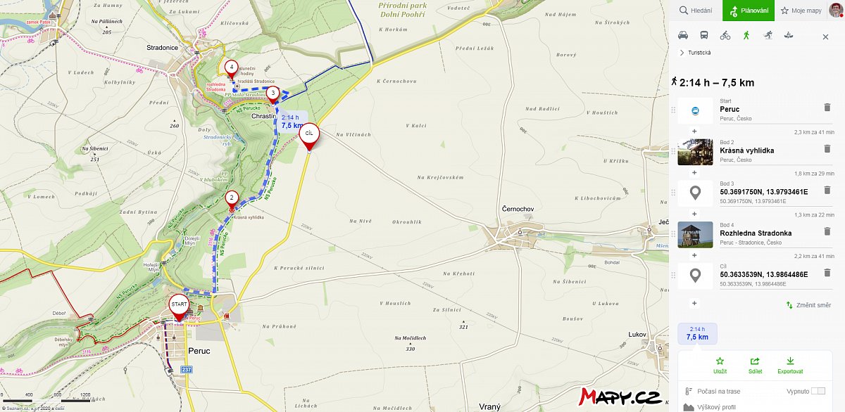 | 8.9.2020 | Peruc a rozhledna Stradonka | Peruc | silnice odbočka na Chrastín | 4 | 8 | |