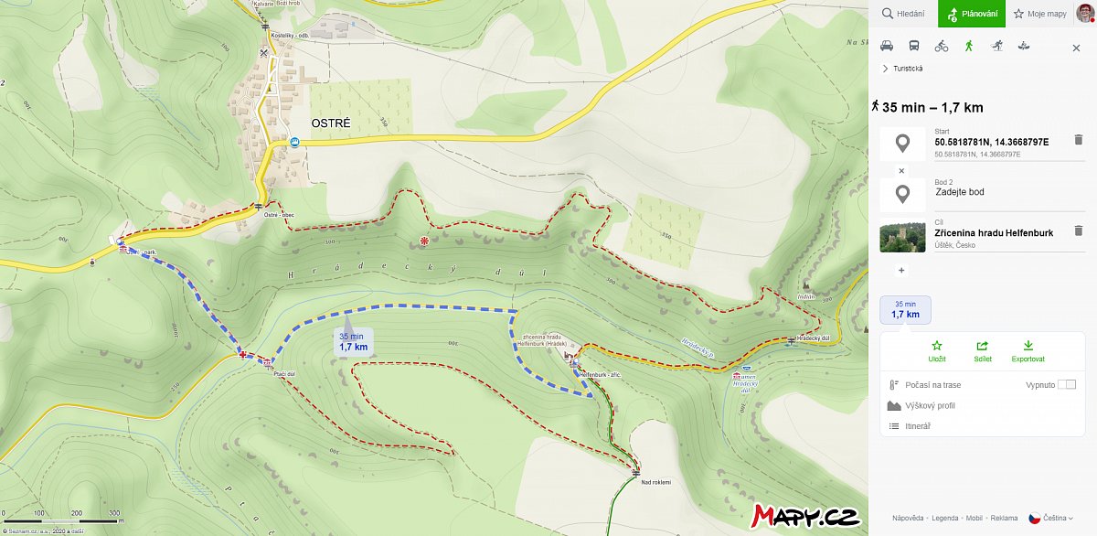 | 3.10.2020 | Zřícenina hradu Helfenburk | Parkoviště Ostré | Ostré - park. | 2 | 4 | |