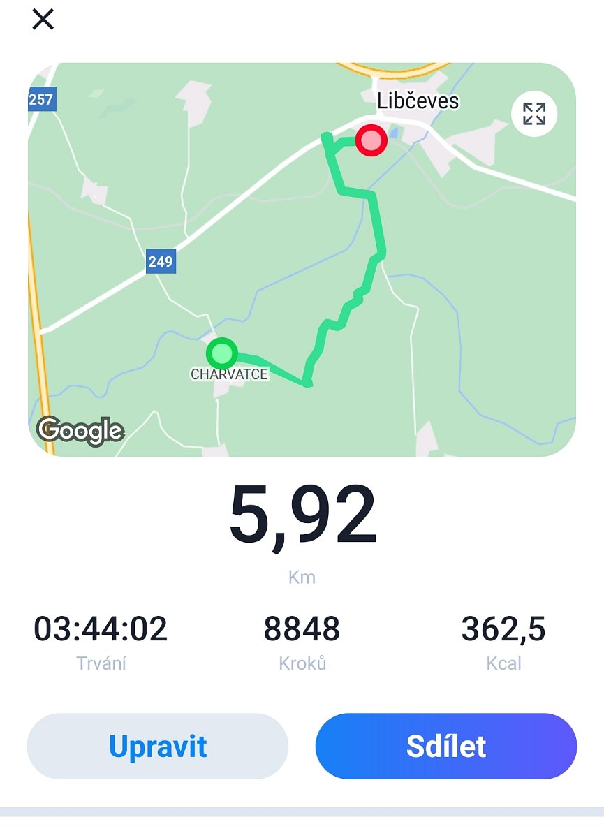 | 21.4.2023 | Ranní procházka | náš dům | náš dům | 2 | 3 | |