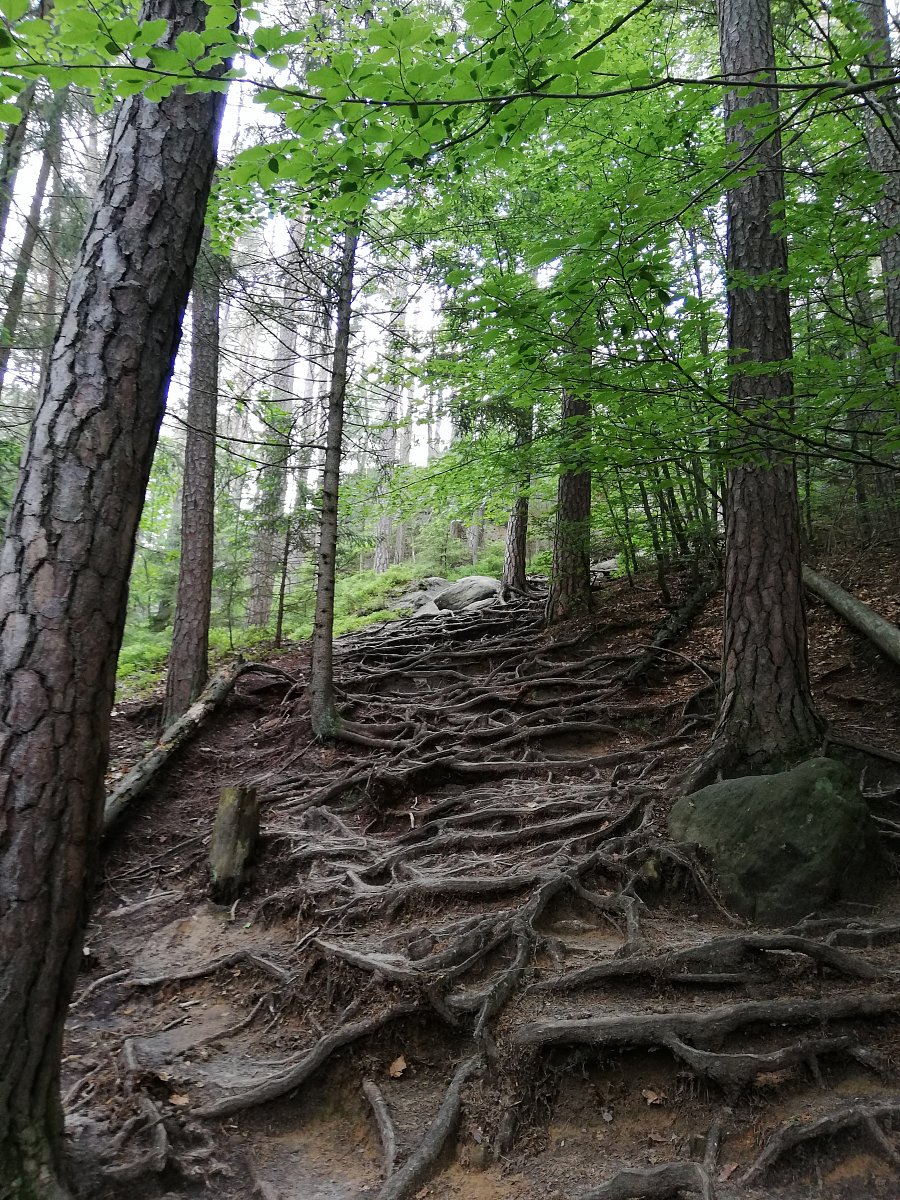 Z Budilova křížem krážem po stezkách kolem skal a Toulcových Maštalí. Pak autem do Nových Hradů, zámek a obora a opět autem do Poličky, kde jsem si prohlídla hradby a centrum.