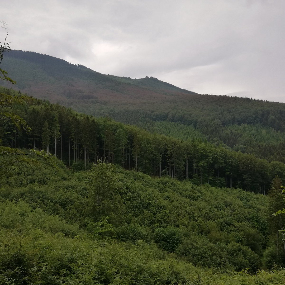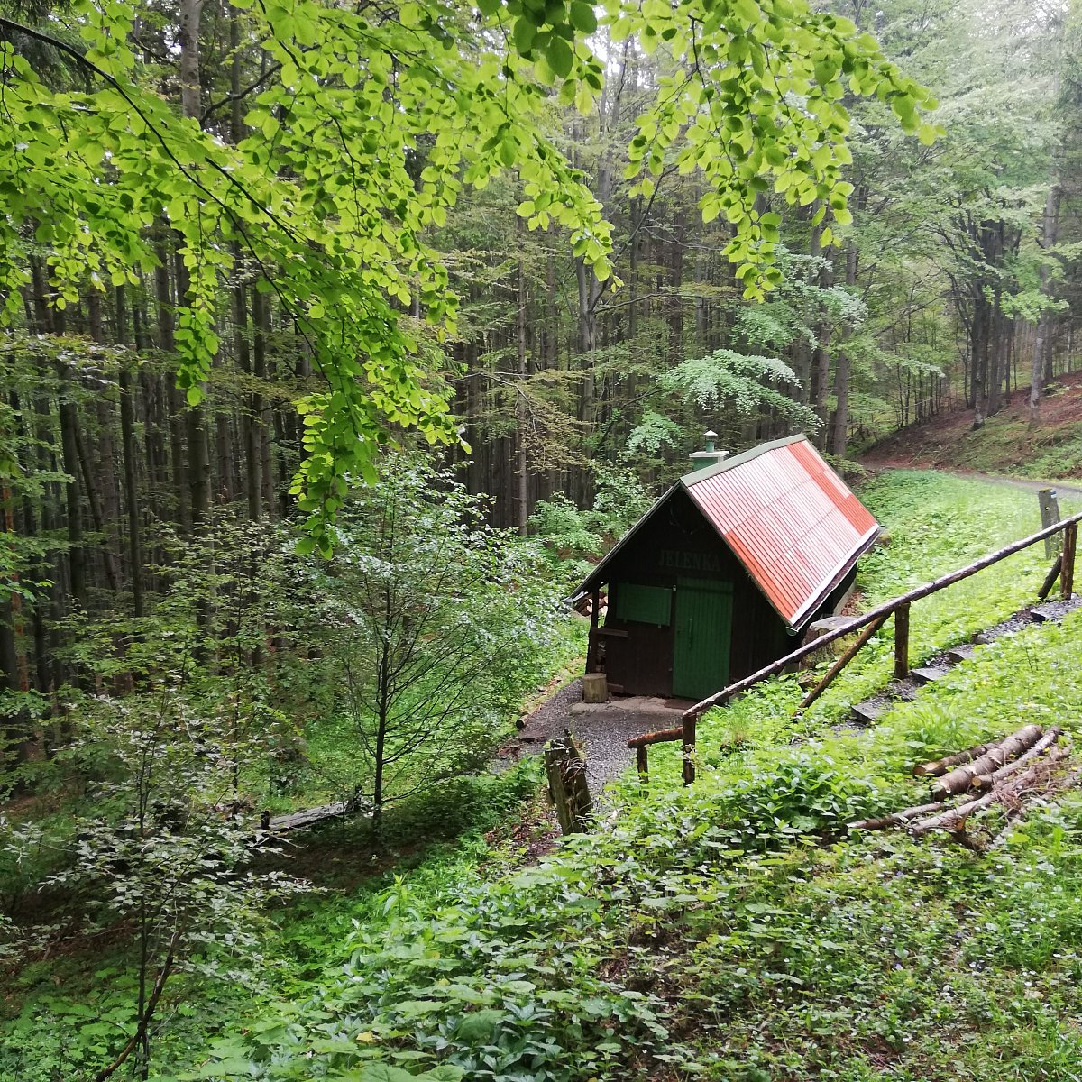 Z Ramzové po zelené, Vražedným potokem na Obří skály, zpět pod Obří skály až do Lipová Lázně. Tam mě čekali kamarádi, prohlídli jsme si lázně a vlakem společně do Olomouce.