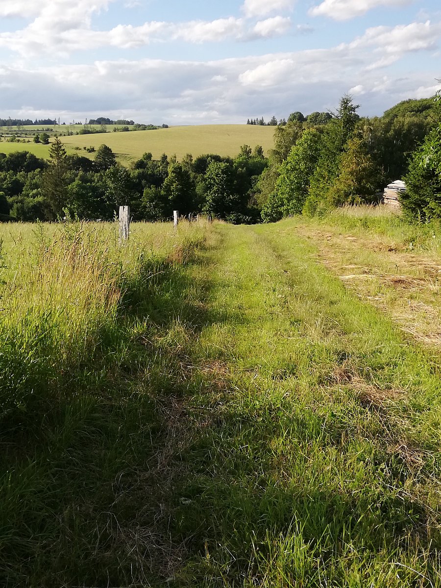 Dopolední vycházka přes Michalov, loukami, lesem a úvozem k chalupě. Odpoledne kolem rybníků, lesem k Bradelnému potoku, zpět loukou a lesem k chalupě.
