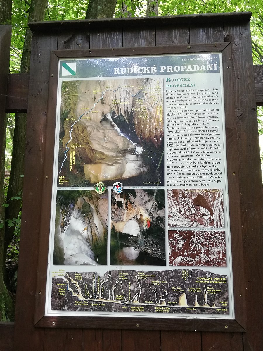 Z parkoviště v Jedovnici přes Rudice k lomu Seč, zpátky do Rudic k větrnému mlýnu, NPP Rudické propadání, kolem rybníka Olšovec do Jedovnice.