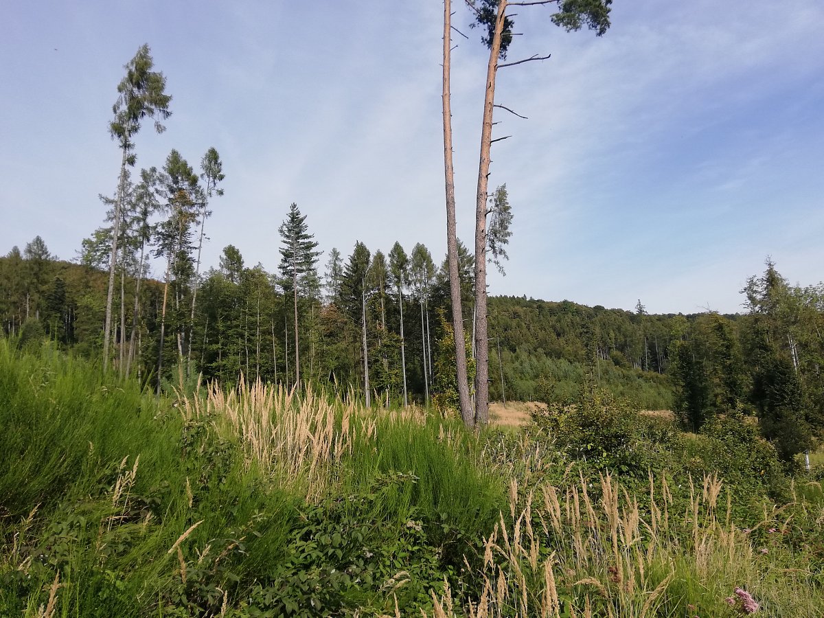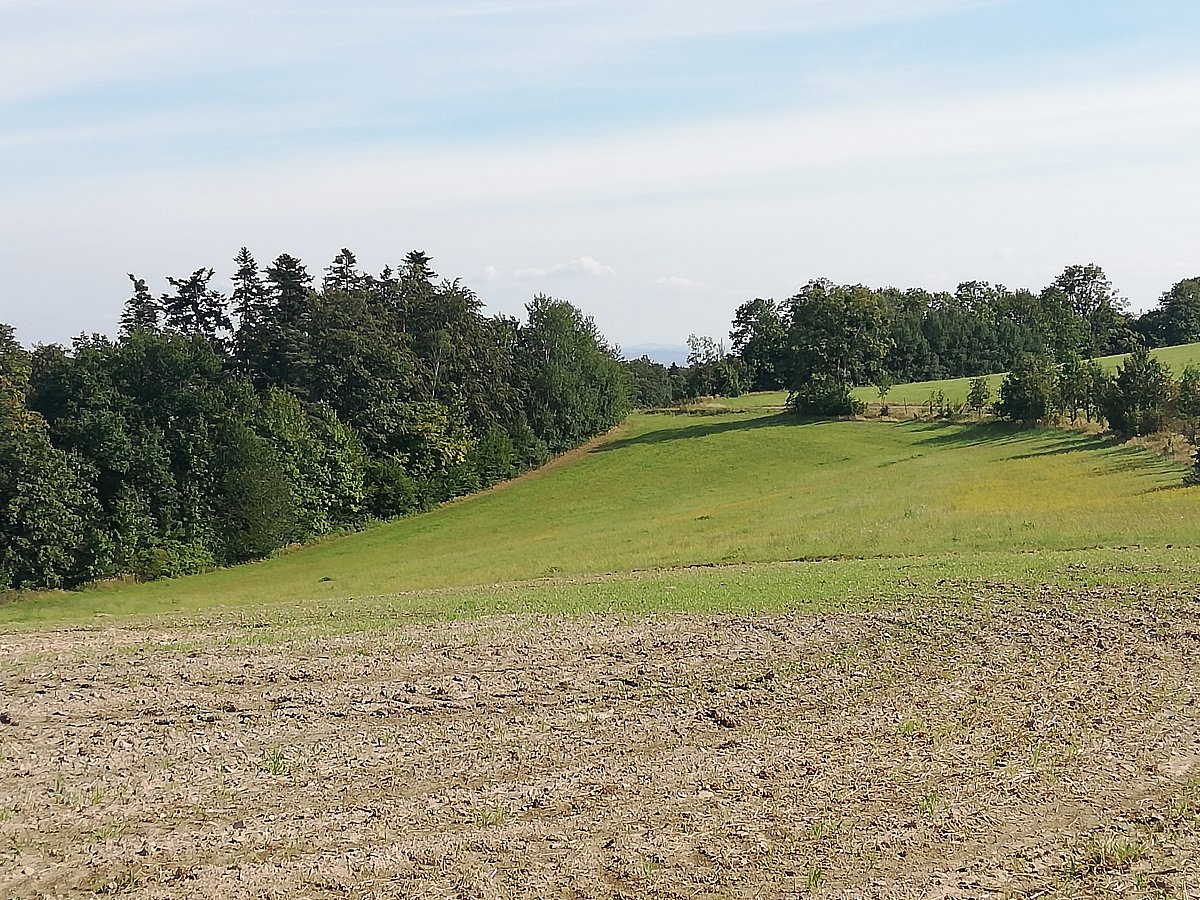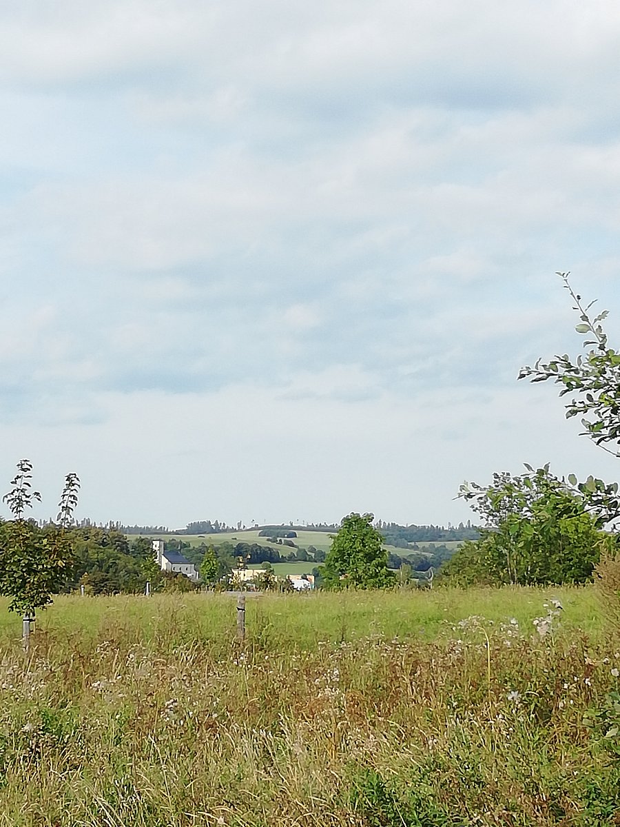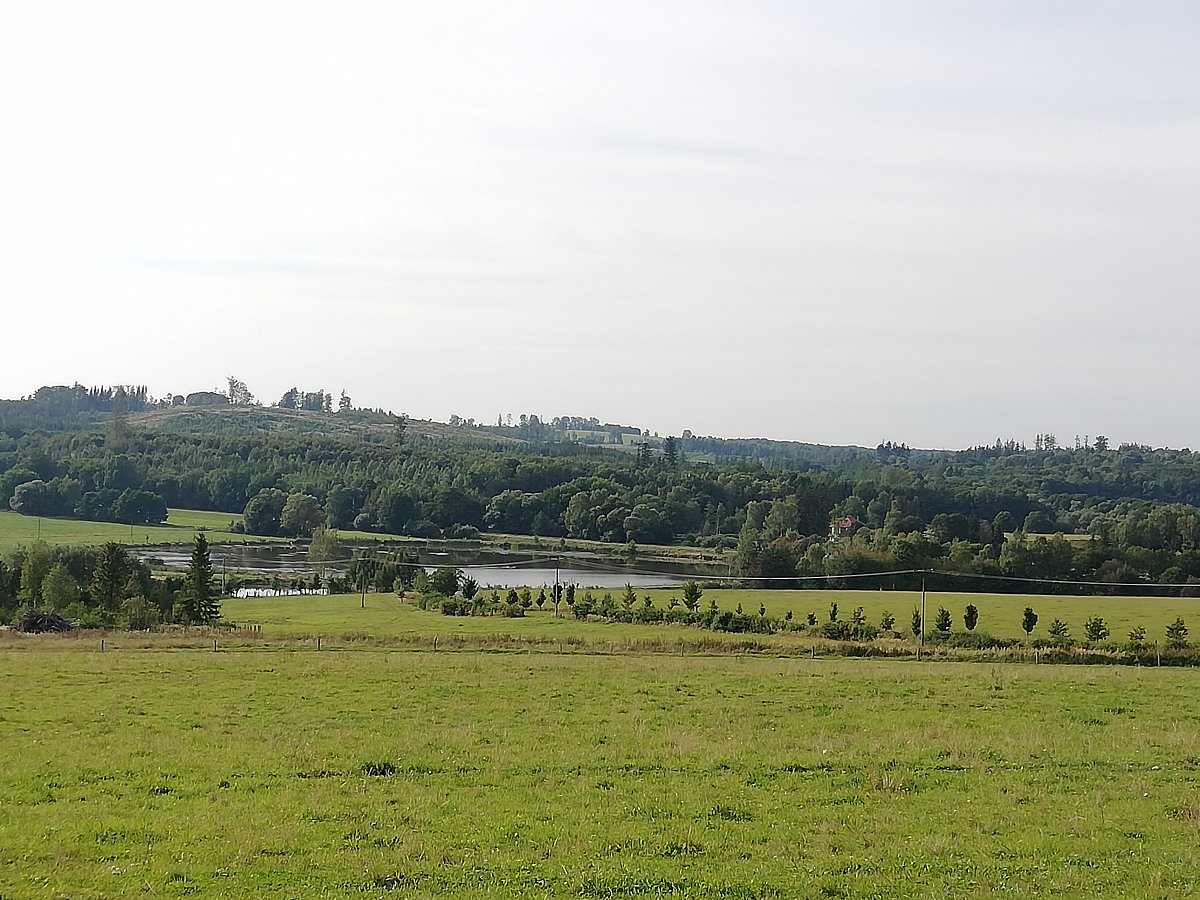 Odpoledni procházka z chalupy směrem k Michalovu lesem a loukami přes Hanslovec, Bradelný potok, k chalupě.