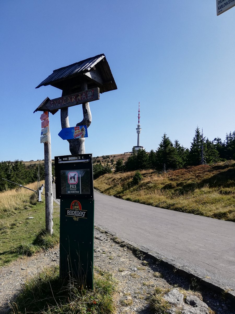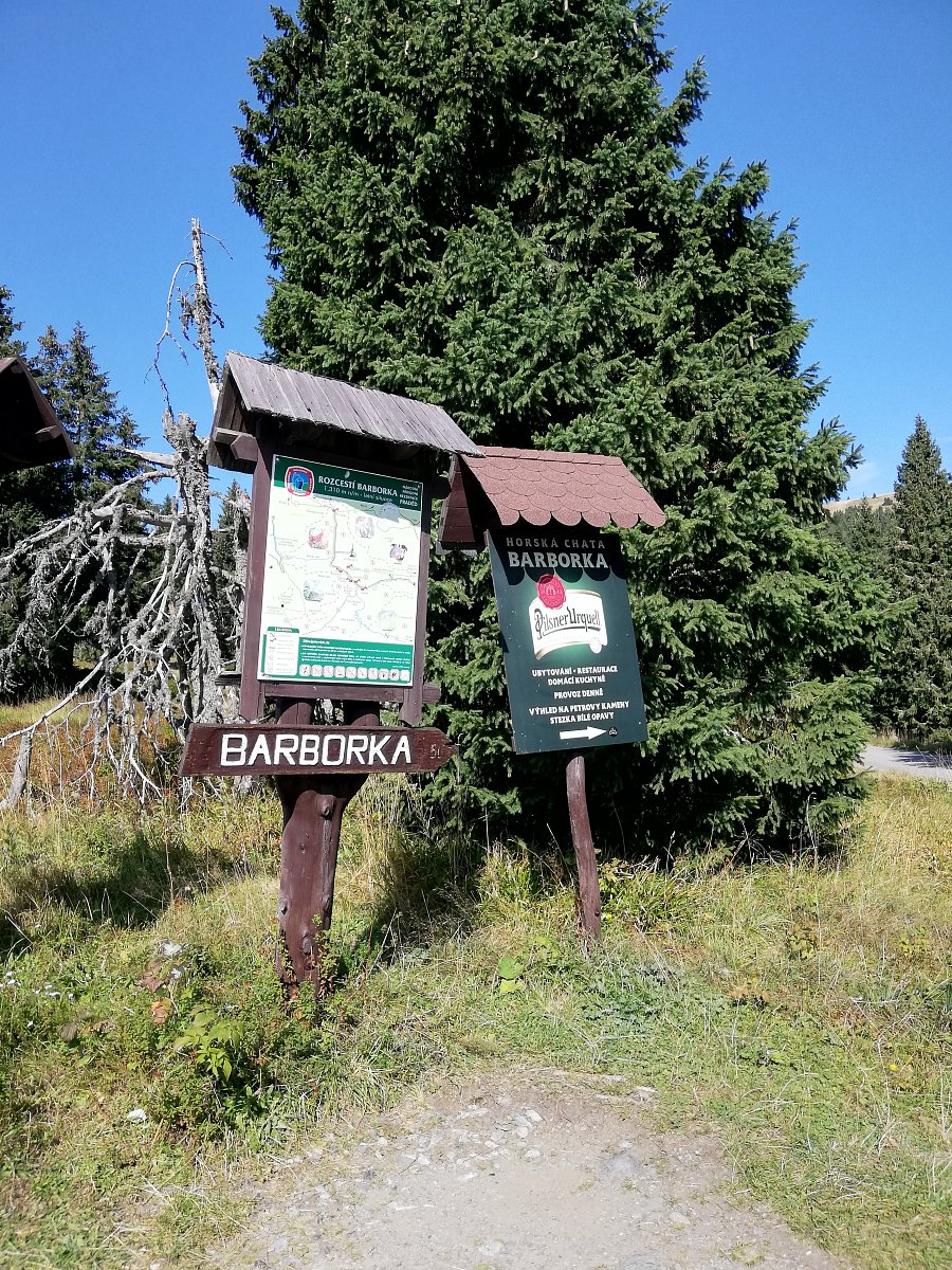 Z Ovčárny na Praděd, zpět k rozcestníku na Barborku a Bílou Opavou do Karlové Studánky