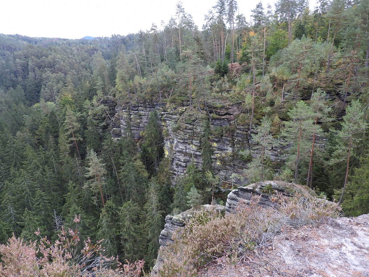 Start v Růžové k rozhledně Růženka na Pastevním vrchu. Dále přes Kamenickou stráň, Kamenickou vyhlídku a Dolský mlýn do Jetřichovic.
