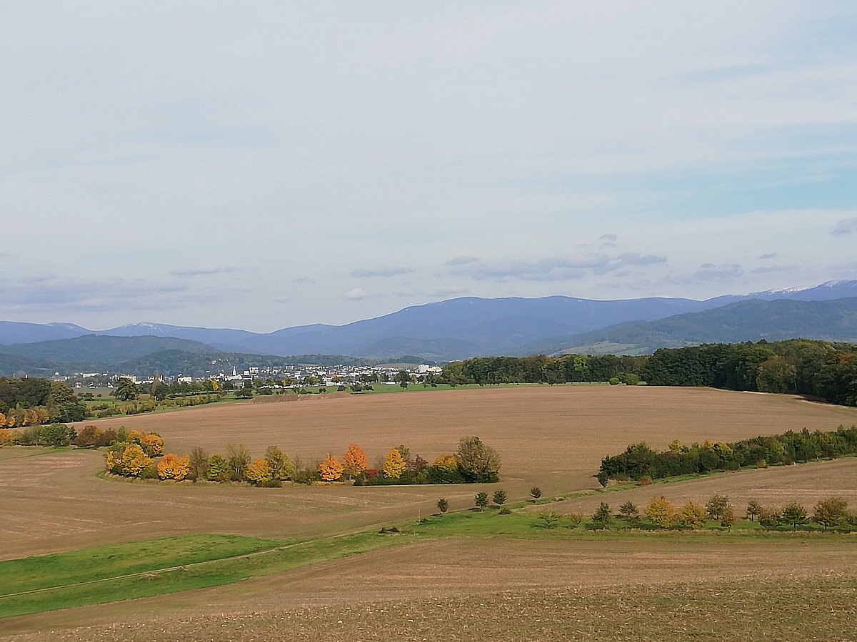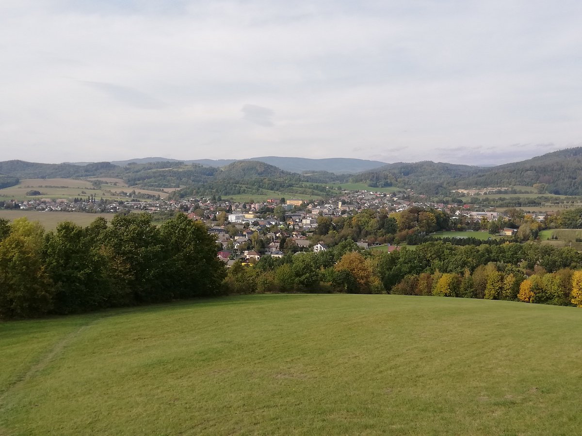 Z Bludova lesem na Bludoveček, rozhlednu Háj, ke Kostelíčku, Bludovem na rozhlednu Brusná a na nádraží Bludov.