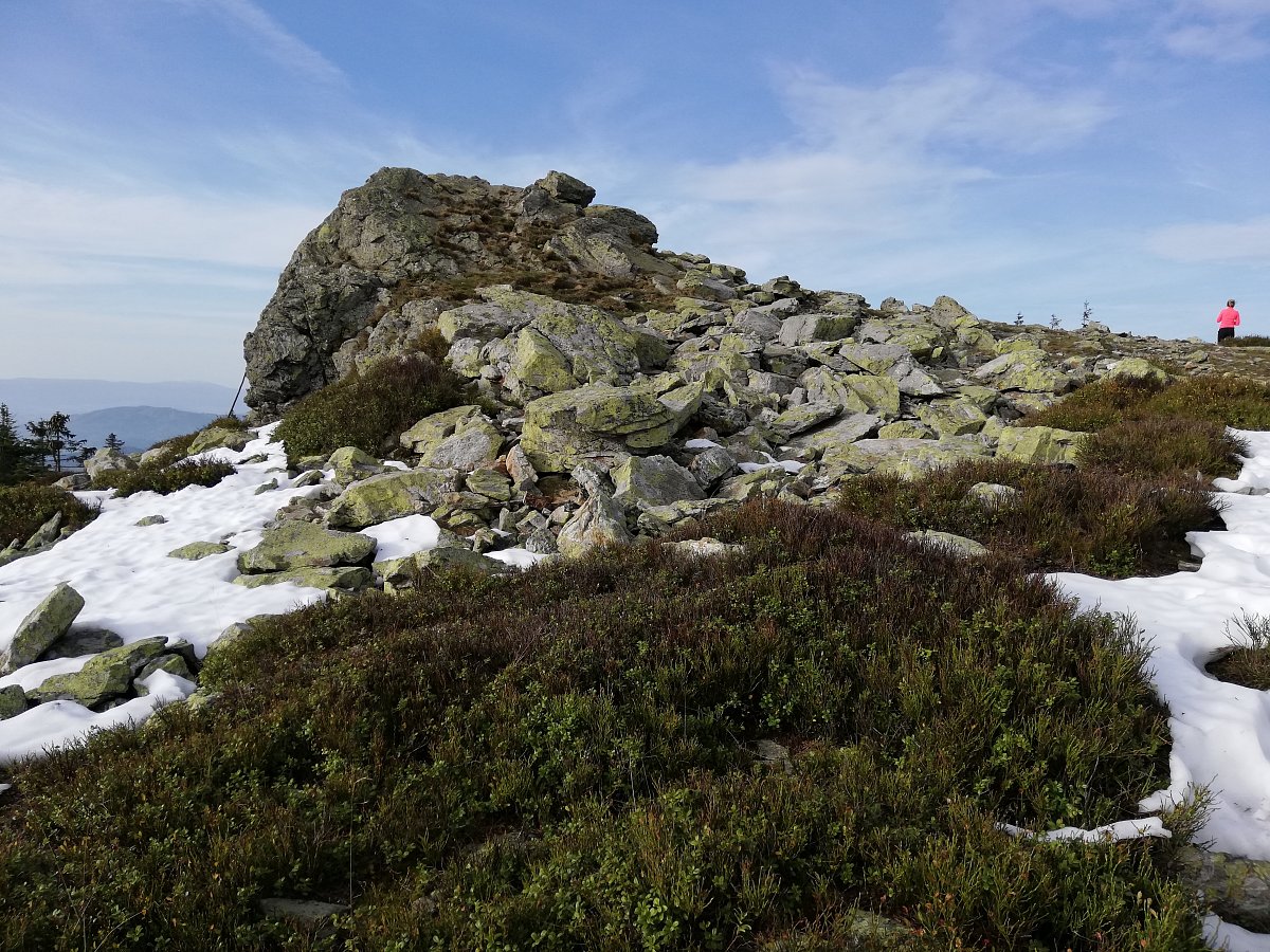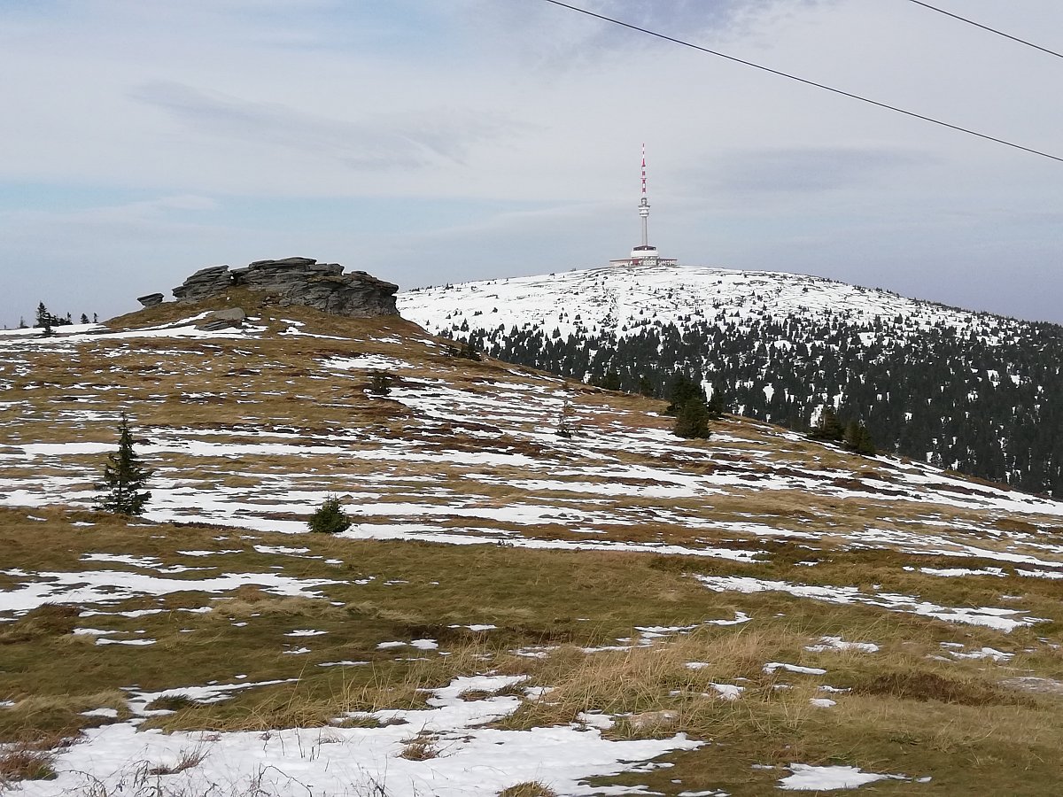 Od Ovčárny směr Petrovy kameny, Vysoká hole, Jelení studánka, Pecný, Ztracené kameny, Skřítek. Místama byl sníh ale i brusinky a borůvky.