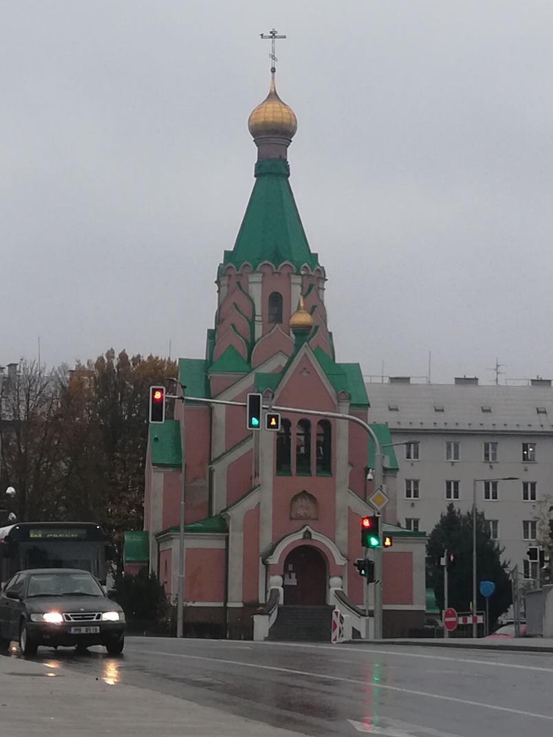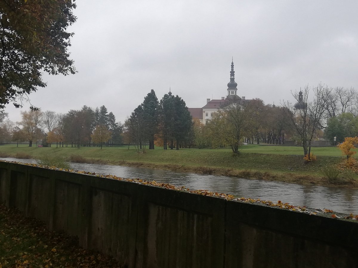 Odpolední procházka (spíš rychlá chůze) v dešti parky, přes město a podél Moravy domů.