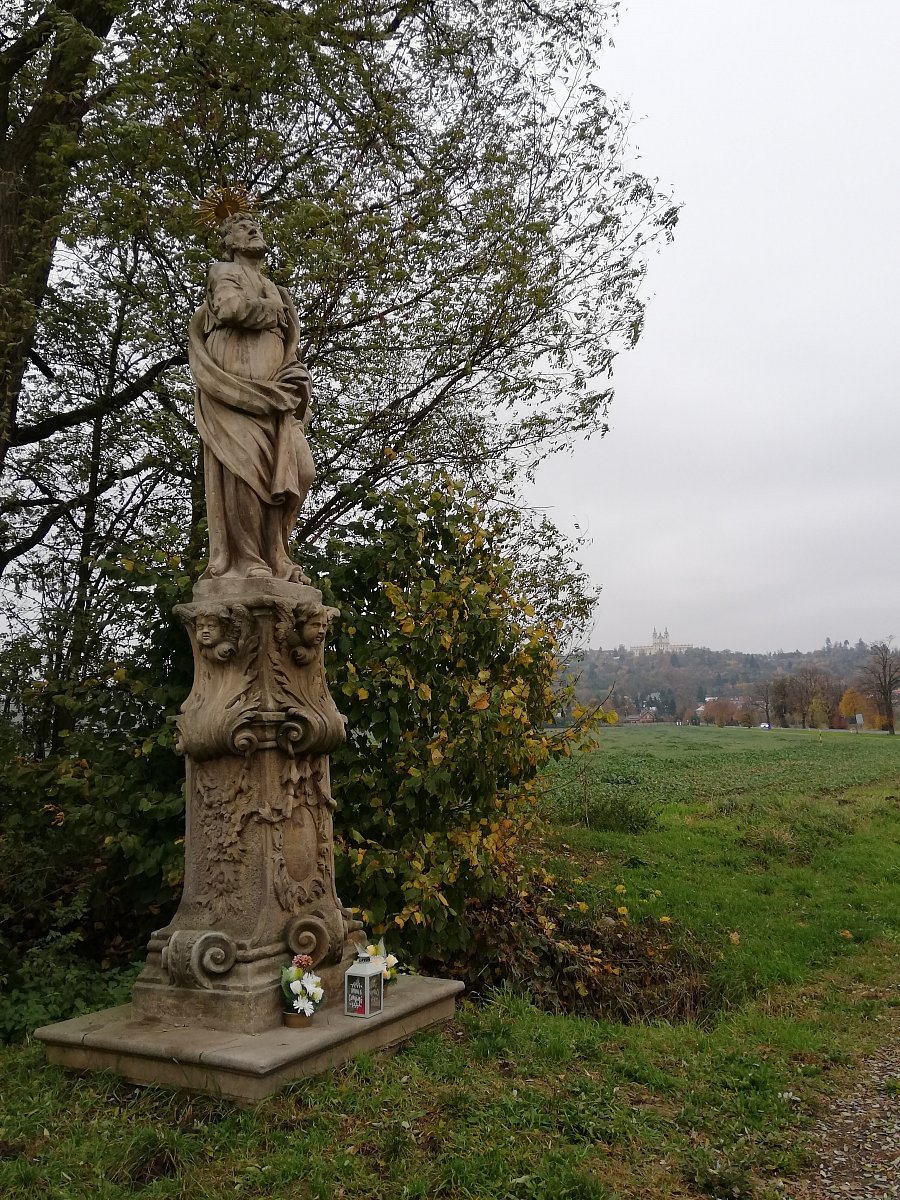 Z bydliště na Svatý Kopeček. Podél Moravy, přes Černou cestu, Chválkovice, Samotišky a křížovou cestou na Svatý Kopeček a zpět k domovu.