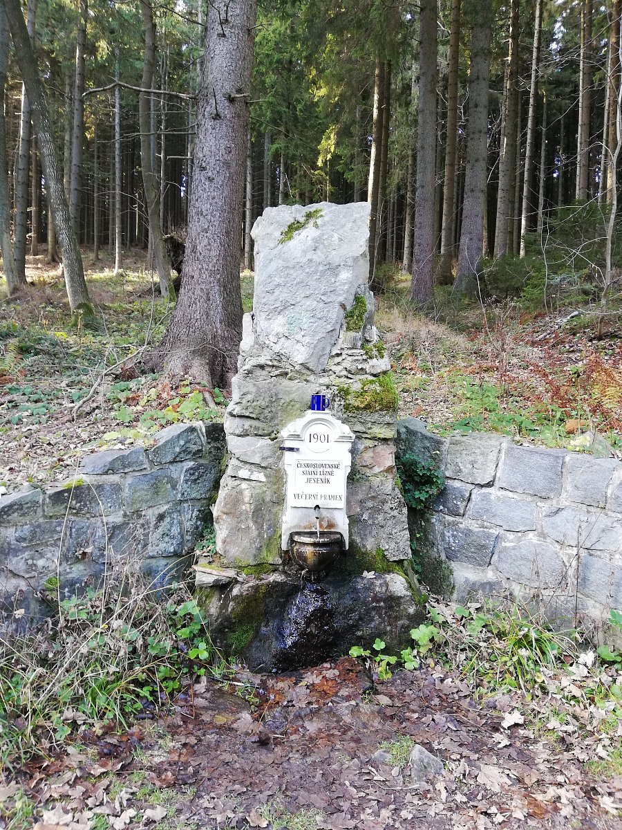 Z nádraží Lipová Lázně přes Pomezí, jeskyně Na Pomezí, Medvědí kámen, Ripperův kámen, různé prameny, lázně Jeseník a do Jeseníku