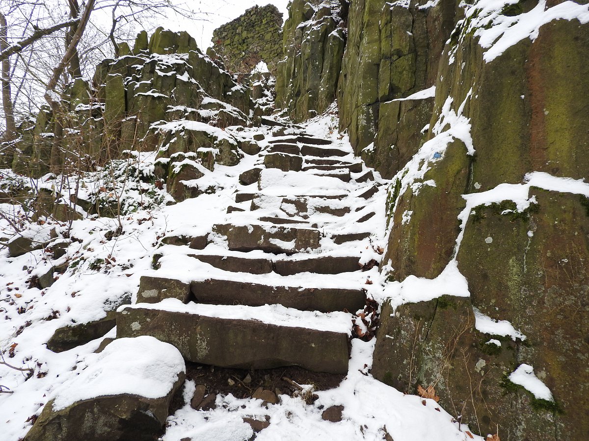 Start výletu u Kocourova, odtud na zříceninu hradu Ostrý, zpět k silnici a po silnici do Milešova. V Milešova kolem zámku k letohrádku v zámeckém parku a na kalvárii za vsí. Zpět přes Milešov kolem kostela k rybníčkům za Milešovem, kde je autobusová zastávka.