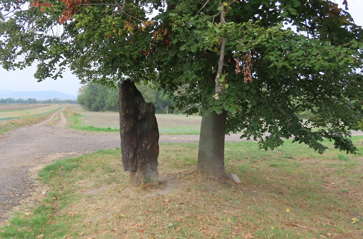 Výlet z Peruce do Slavětína po červené tur. značce. Trochu jsem odbočila z trasy a malinko si "našla", ale to vůbec nevadilo. Viditelnost byla mizerná. Kolem krásné, ale zdevastované kapličky ve Slavětíně k menhiru baba a vlakové zastávce dost daleko za vesnicí.