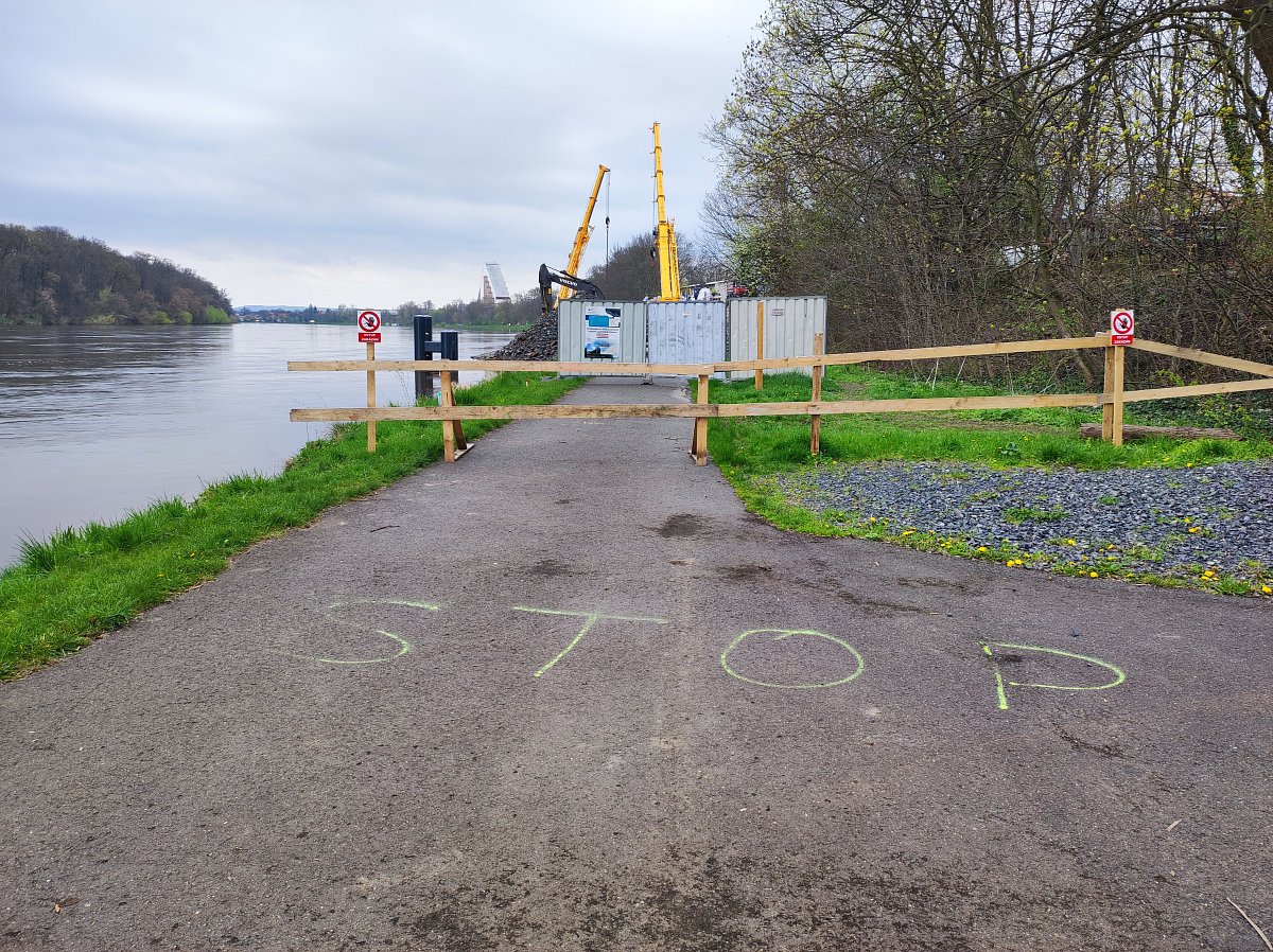 Z domova dolů k Labi po cyklostezce na druhý konec města. Vyházela jsem větve z rudného pramene a umazala si ruce, voda je železitá. U maríny se buduje přístaviště pro malé lodi a cesta je uzavřena. Vyšla jsem nahoru a domů se vrátila přes město.