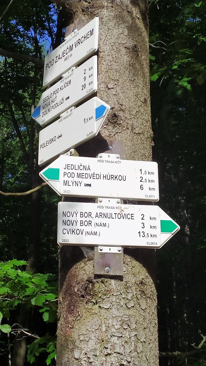 Původně jsem šla okruh přes Nový Bor, ale cestou jsem minula ukazatel na Jedličnou, tak jsem se rozhodla jít na Jedličnou :) První zatávka Pod Zaječím vrchem, druhá Jedličná, třetí místo smutné události známého dětského herce Tomáše Holého. Skonal tragicky snad jako spolujezdec v autě v jedné zatáčce nad Polevskem. Je to smutné místo, avšak lidé nezapomínají ❤