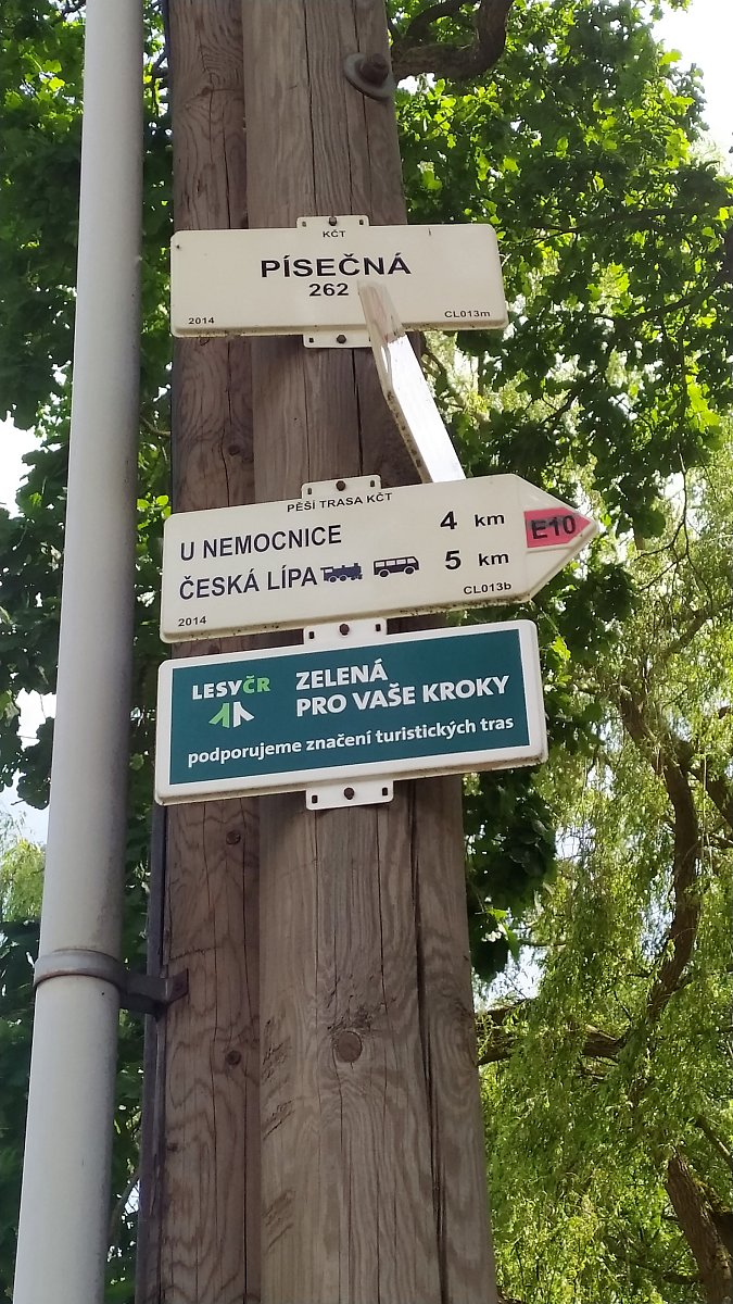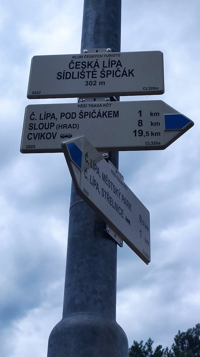 Procházka na Špičák, zpět přes Písečnou, Bukovany, Pihel (čápi), Sloup do Okrouhlé. Na titulce kopec Špičák v České Lípě.