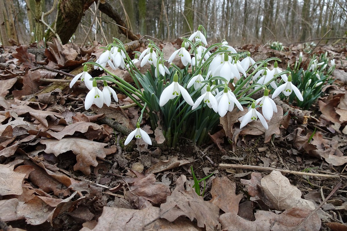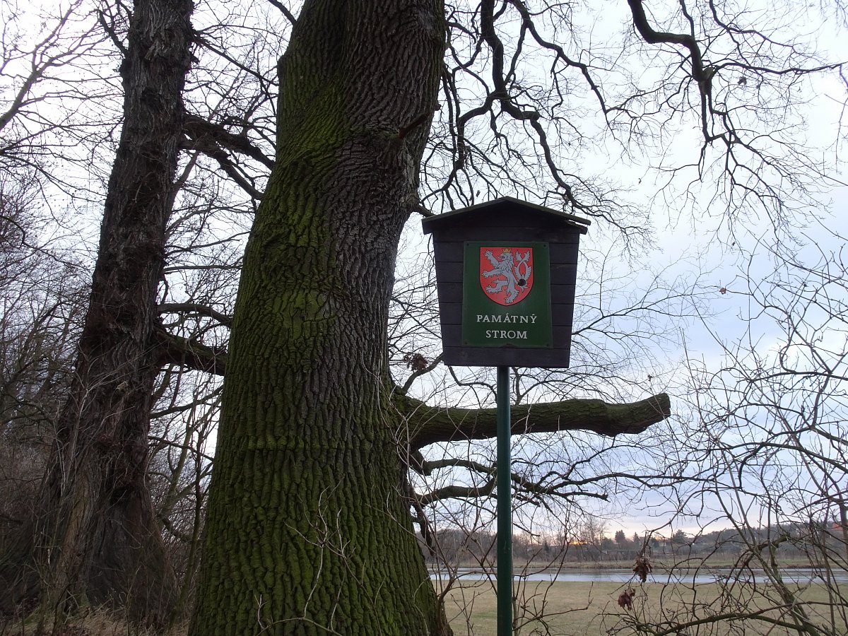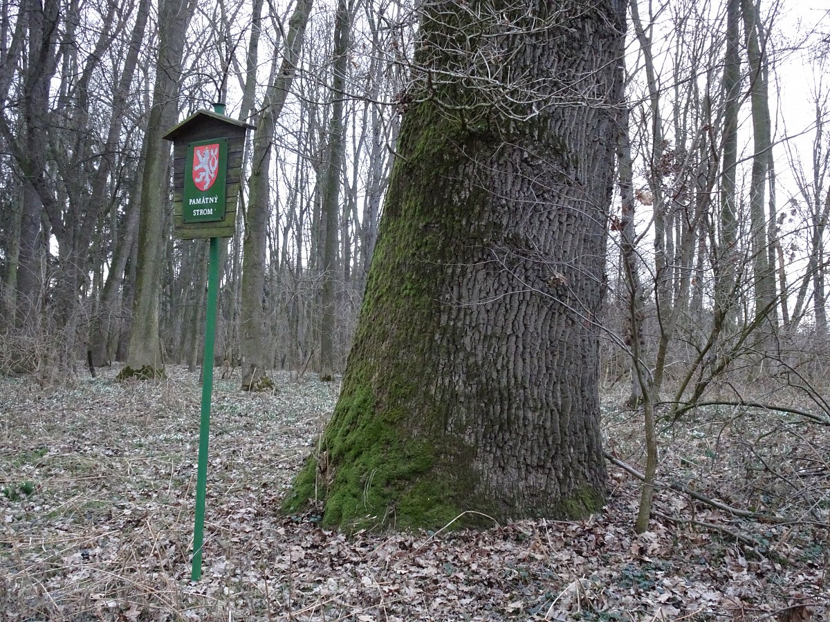 Šla jsem vyhledat 300 let starou památnou borovici černou v háji za Zálužím. Je to opravdu impozantní strom. Rostou zde sněženky a začínají kvést. Vrátila jsem se do Záluží a pokračovala podle Labe do Kozlovic, kde roste další památný strom - lípa. Z Kozlovic dál podle toku Labe do Dobříňského háje, kde jsou další památné stromy, duby. Přírodní rezervace sněženek začíná hezky nakvétat. Kolem rodného domu básníka Josefa Hory na autobusovou zastávku.