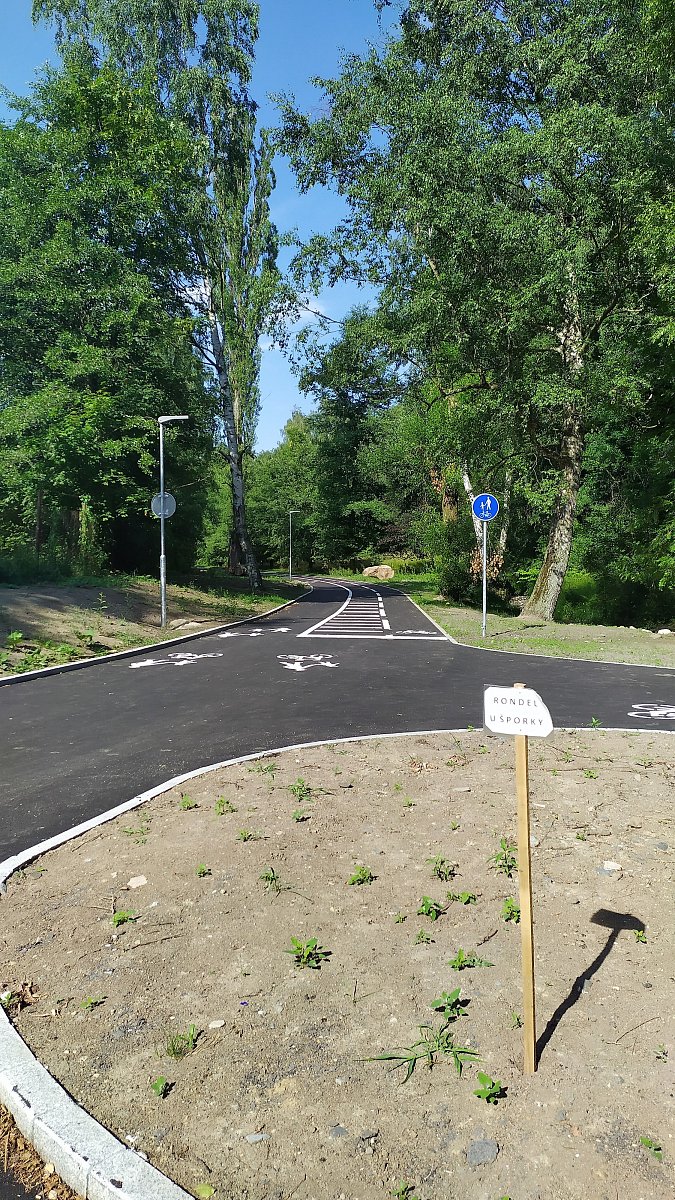 Cestou na bowling jsme šli přes novou cyklostezku a uchvátil mě kruhový objezd na cyklostezce :)