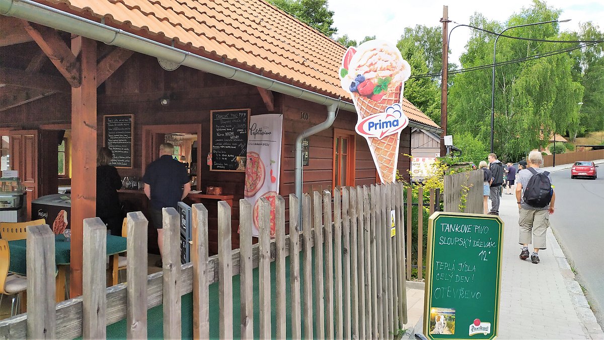 Do Sloupu na výtečnou zmrzlinu a pro vodu do studánky. PS Cestou jsme minuli Radvanecký rybník: idylka s rybářem...