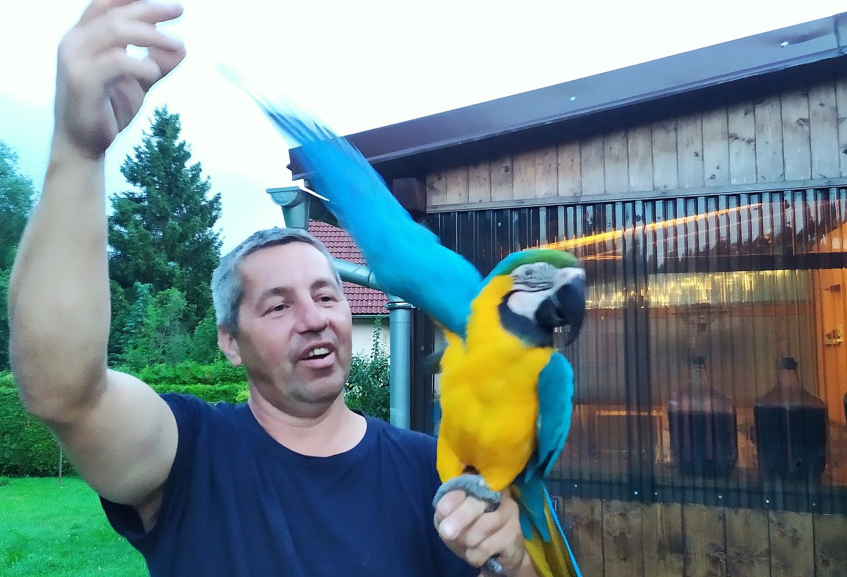 Dnes jsme se nevydali ani tak za Loskutákem jako za: Ara ararauna Arčim, je nádherná ❤