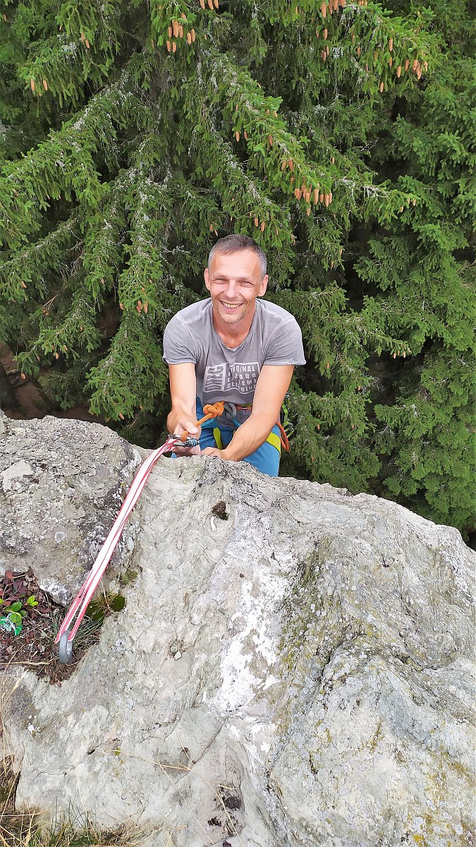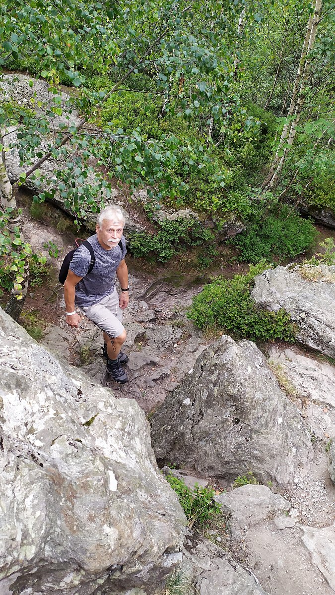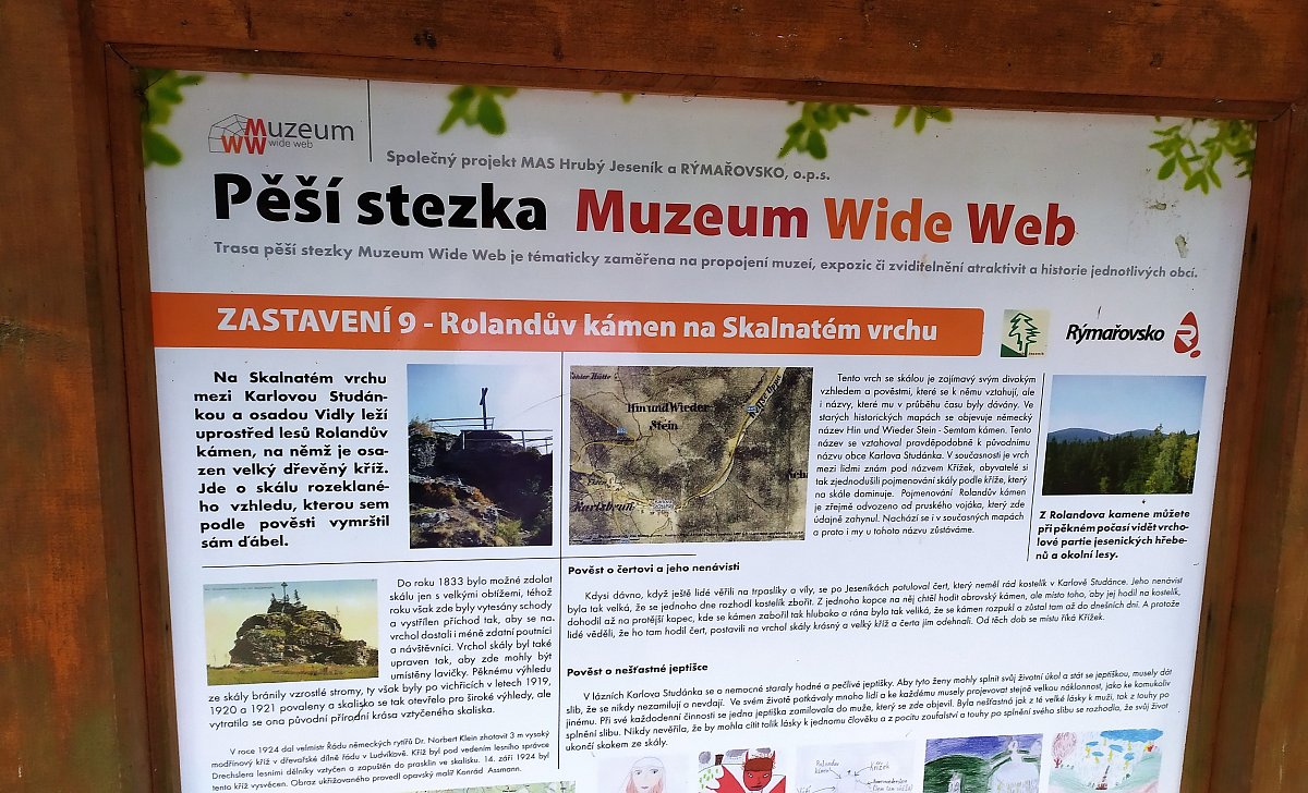 Prošli jsme se Karlovou Studánkou a vydali na lázeňský okruh po modré na Rolandův kámen na Skalnatém vrchu.