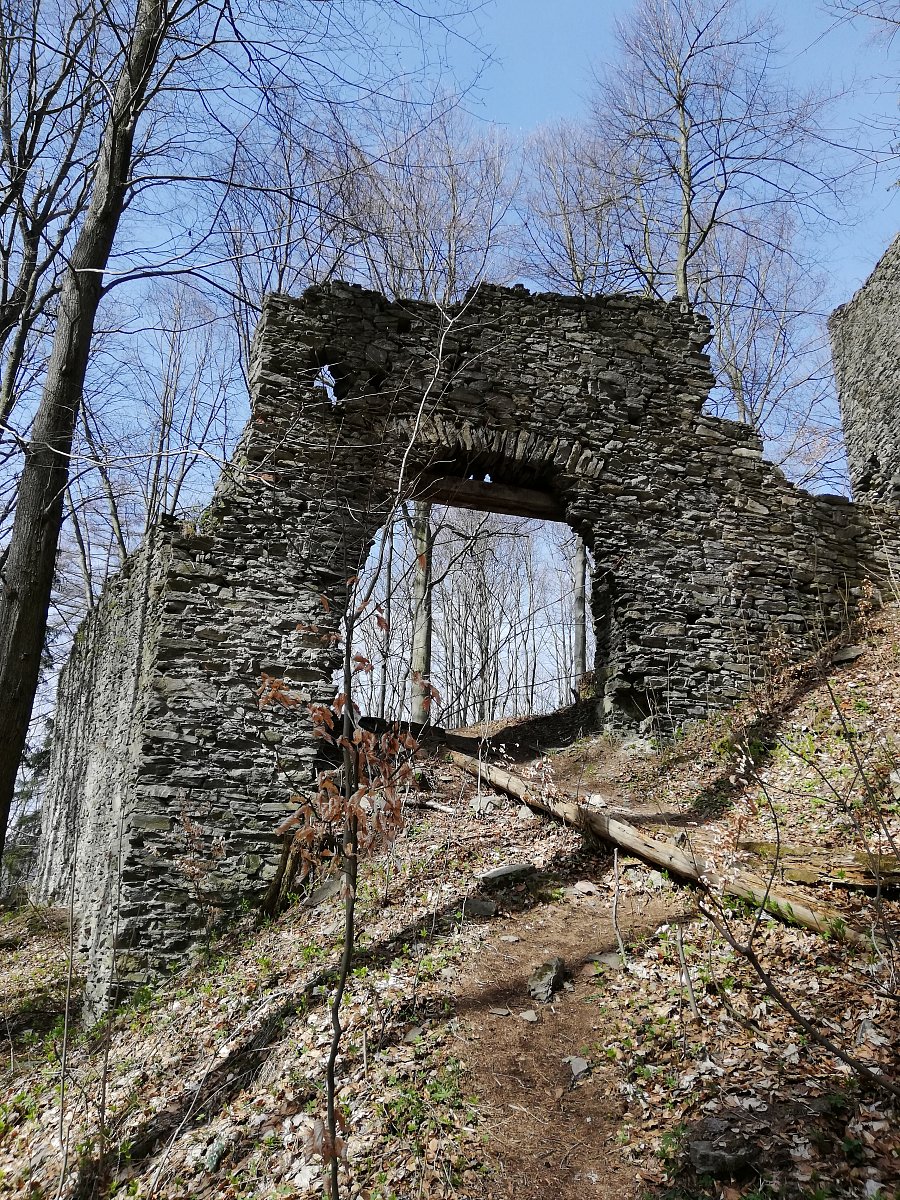Z Hanušovic jsme se vydali po modré značce směr Raškov. Ze začátku cesta byla skoro po rovince, příjemným lesíkem, kde už rostl medvědí česnek ale na Nový hrad začalo stoupání . Námaha se vyplatila, protože nás čekal celkem rozlehlý hrad - zřícenina z r.1470. Po důkladném prozkoumání jsme pokračovali k Raškovskému vodopádu. Bohužel, při povídání jsme náš cíl minuli a pokračovali až do Bohdíkova, kde jsme si uvědomili, že je něco špatně. tak jsme se otočili a tentokrát už jsme náš cíl neminuli.Vraceli jsme se zpět do Hanušovic.