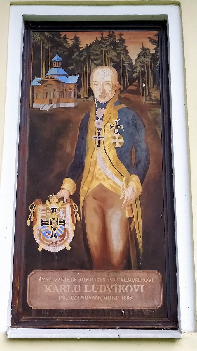 Lázeňský dům Bezruč s krásnými malbami, viz zastávky. Na freskách sdělení, že lázně byly přejmenovány dle velmistra Řádu německých rytířů arcivévody Karla Ludvíka roku 1803.
