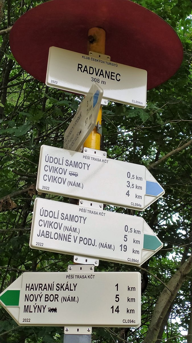 Výlet na Havraní skály a jezírko. Zpět přes Radvanec tzv. Lipskou cestou. Jde o původní trasu spojující Lípu se Žitavou. Byla budována od 13. století a sloužila až do konce 18. století, kdy byla postavena nová císařská silnice, která ovšem vedla přes Nový Bor. Cestou zpět přes Radvanec, viz zastávky. Reliéf Ukřižování vytesaný do skalního pískovcového bloku je jedním z projevů barokní lidové zbožnosti znázorňující utrpení Krista (památkově chráněno).