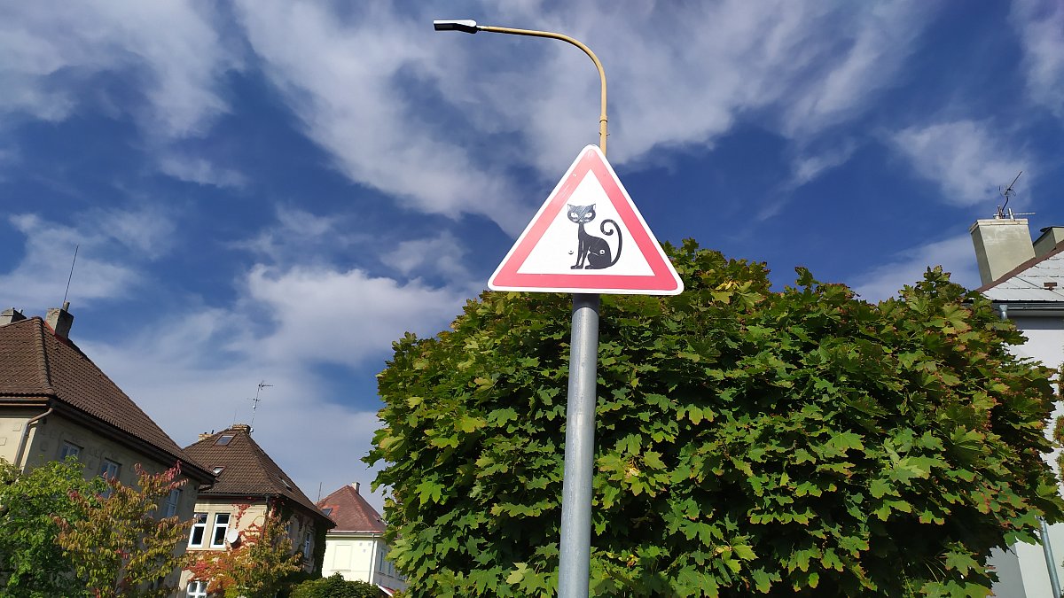Cestou k zahradnictví mě upoutala značka, viz zastávka. Asi tam bydlí samý holky - kočky ;-)