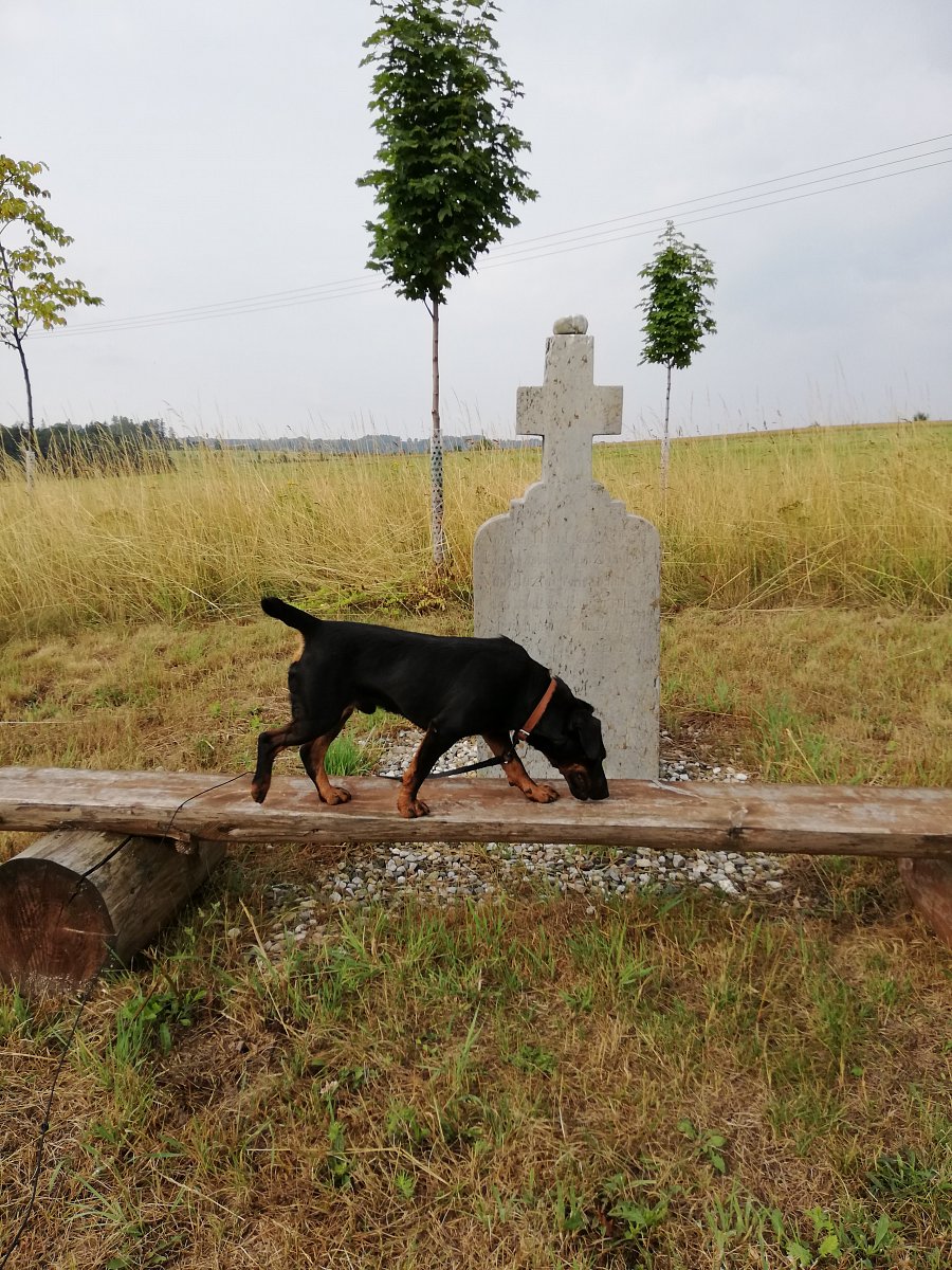 Tentokrát jsem měla parťáka, sousedovic pejska. Z Potštátu jsme se vydali směrem k vyhlídce nad Potštátem a dál pokračovali po svážnici lesem pod Michalovem. Přišli jsme až k zelené značce po které jsme došli ke Skalnímu městu. Potom jsme šli kus po asfaltce až pod vleky a tu jsme radši vyšplhali sjezdovku a pokračovali loukami směrem k Potštátu.