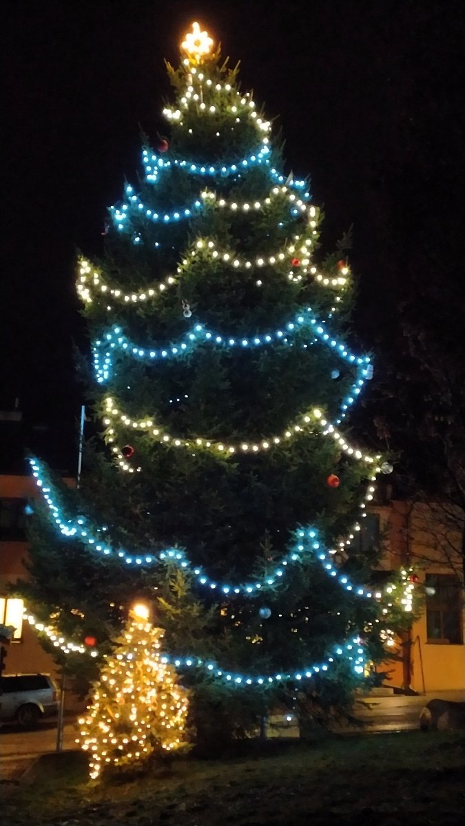 Máme po sněhu, ale vánoční stromeček v Okrouhlé vesele svítí a máme dokonce dva. Taťku s malým synkem ;-) a krásný ručně vyráběný betlém...